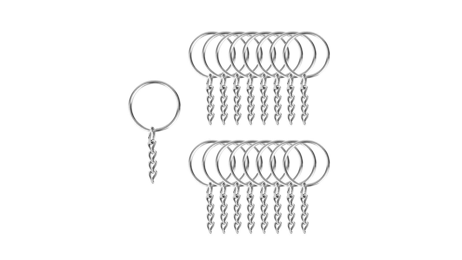 Inele breloc argintii 3cm cu lanț - sunt accesorii practice și versatile care pot fi utilizate pentru o varietate de scopuri. Ele oferă o modalitate convenabilă de a organiza cheile sau a decora genți și rucsacuri. Caracteristici: Realizat dintr-un aliaj durabil și rezistent Lanț de 2.5cm pentru versatilitate în utilizare Inel robust pentru prinderea sigură a brelocurilor sau cheilor Utilizare: Pot fi folosite pentru a organiza cheile, a atașa etichete de identificare la bagaje sau alte obiecte, a decora genți sau rucsacuri sau pur și simplu ca accesorii de modă. Cadou personalizat și practic pentru cei dragi Beneficii: Siguranță asigurată pentru chei și obiecte importante Adaugă un aspect modern și personal în viața de zi cu zi Durabilitate și funcționalitate pentru o lungă perioadă de ut