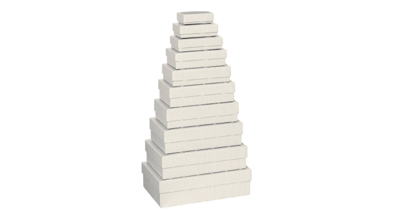 Set 10 cutii dreptunghiulare uni - alb, oferă o soluție elegantă și practică pentru organizarea și ambalarea unei game variate de obiecte. Fabricate dintr-un material robust, cutiiile sunt disponibile într-o gamă de dimensiuni, permițându-ți să găsești dimensiunea perfectă pentru fiecare nevoie. Designul simplu și culoarea albă le fac ușor de integrat în orice decor. Caracteristici: Cele 10 cutii vin într-o gamă de dimensiuni, oferind flexibilitate maximă în organizare și ambalare. Fabricate dintr-un carton de înaltă calitate, cutiile sunt rezistente și durabile. Suprafața albă, conferă cutiilor un aspect sofisticat și minimalist. Cutiile pot fi stivuite una peste alta, economisind spațiu de depozitare. Utilizare: Crearea unui sistem de organizare personalizat în sertare sau pe birou Prote