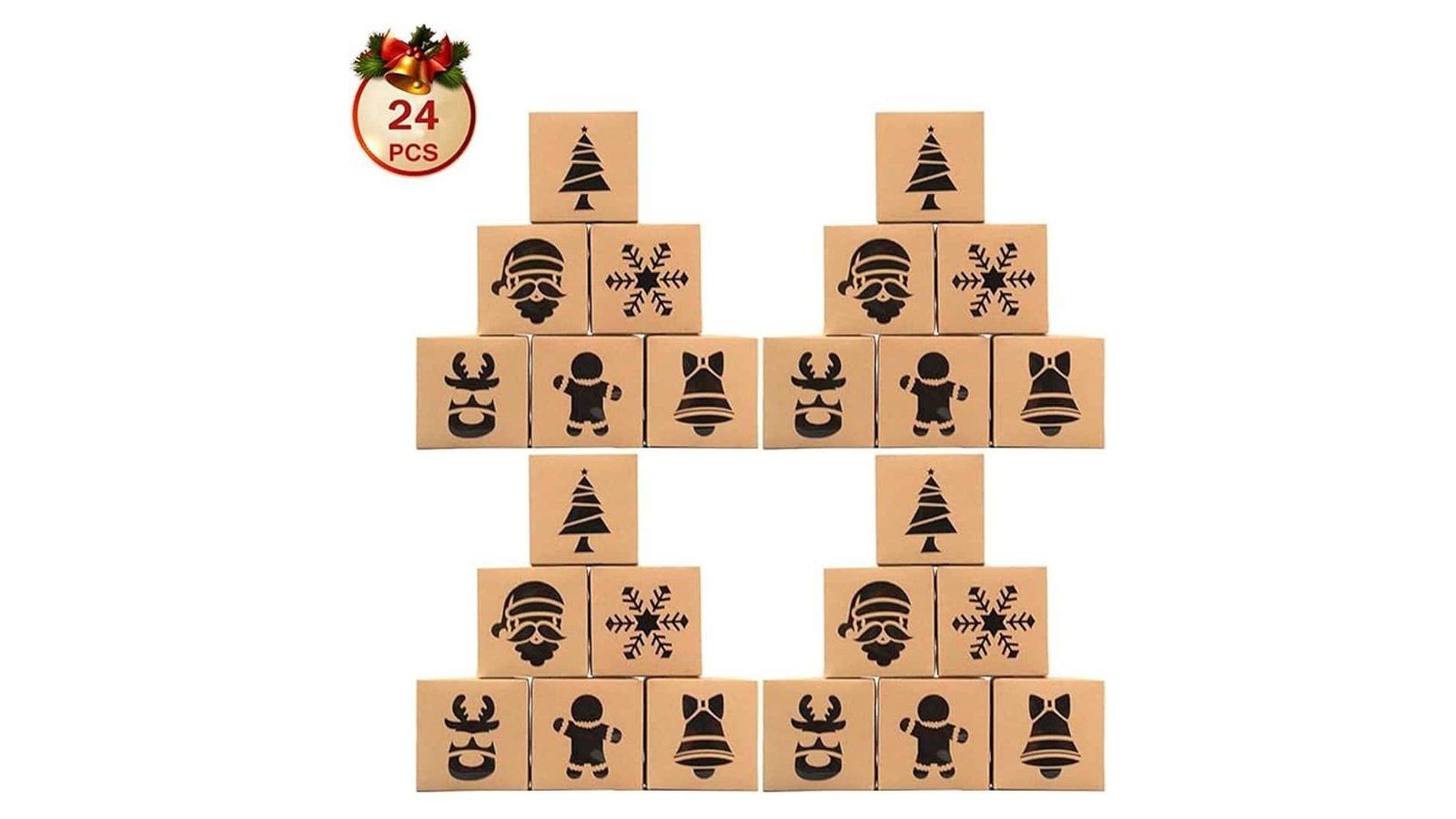 Set 24 cutii de Crăciun cu 6 modele de ferestre diferite - kraft