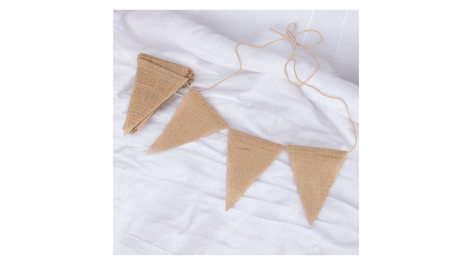 Banner triunghi iută cu sfoară - maro, este un accesoriu decorativ ideal pentru evenimente cu tematică rustică sau festivități în aer liber. Acesta adaugă o notă naturală și simplă oricărui decor, fiind ușor de personalizat pentru diverse ocazii, cum ar fi nunți, petreceri sau aniversări. Datorită materialului de iută, bannerul este rezistent și versatil, putând fi folosit atât la interior, cât și la exterior. Caracteristici: Setul este format din 13 buc. și 3m de sfoară Realizat din material de iută rezistent Include sfoară pentru o montare ușoară Culoare maro natural, potrivită pentru decoruri rustice Design simplu Utilizare: Decor pentru nunți, petreceri aniversare sau baby showers Poate fi folosit în amenajări interioare de tip vintage sau rustic Util în decorarea grădinilor, teraselor
