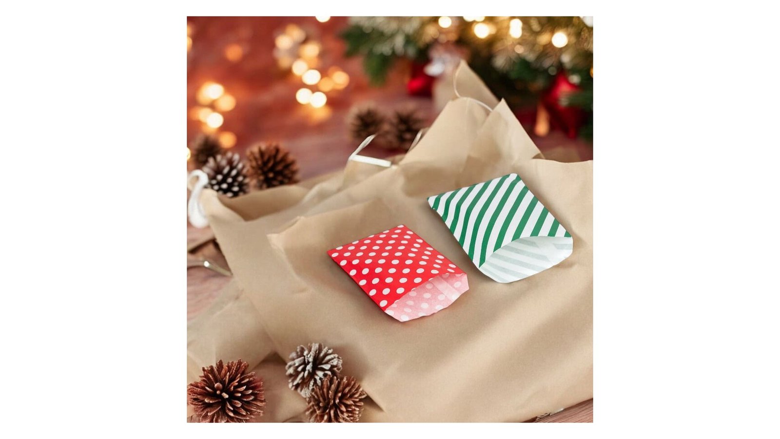 Set 24 pungi de Crăciun 4 modele cu buline sau dungi și stickere