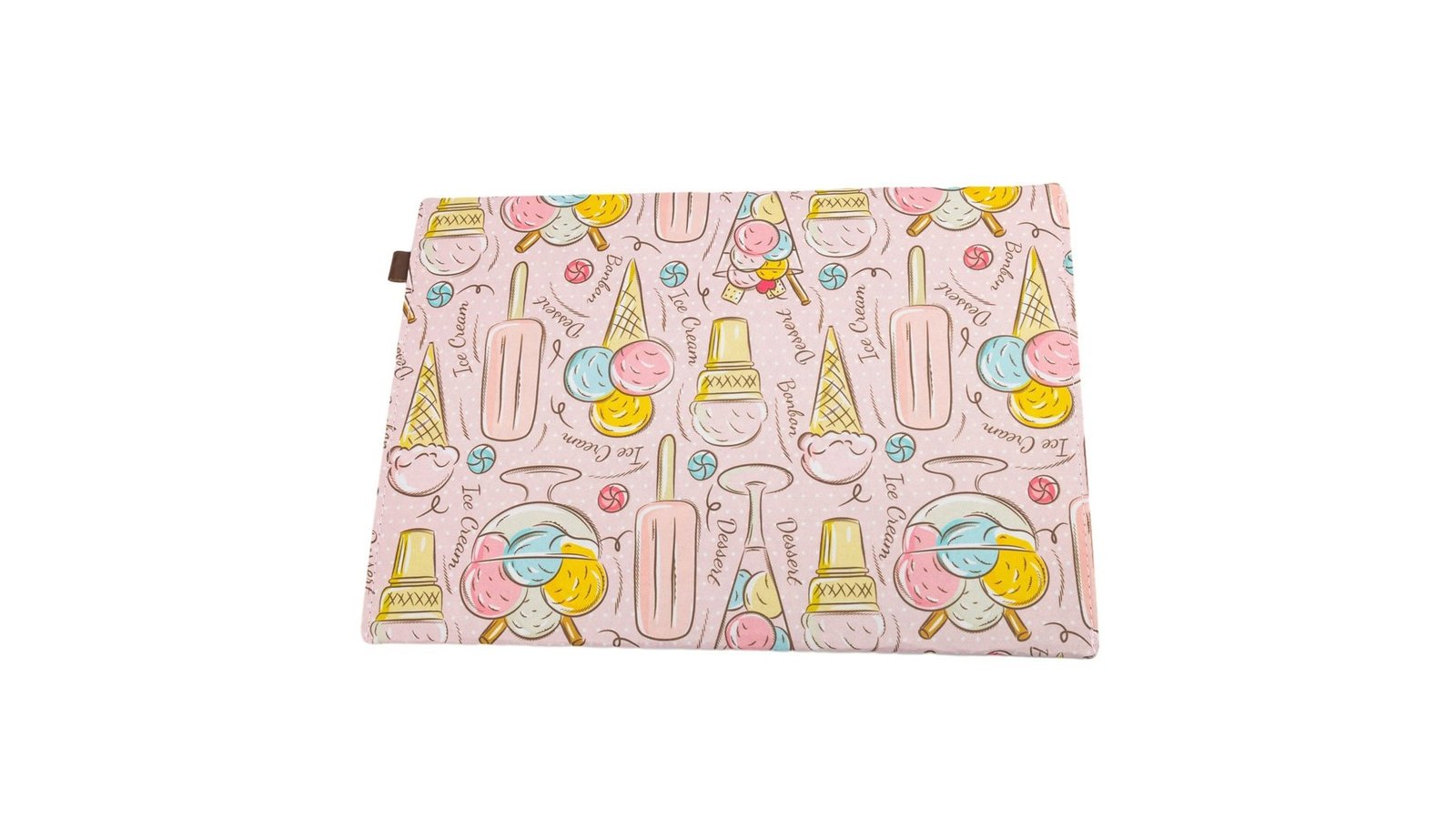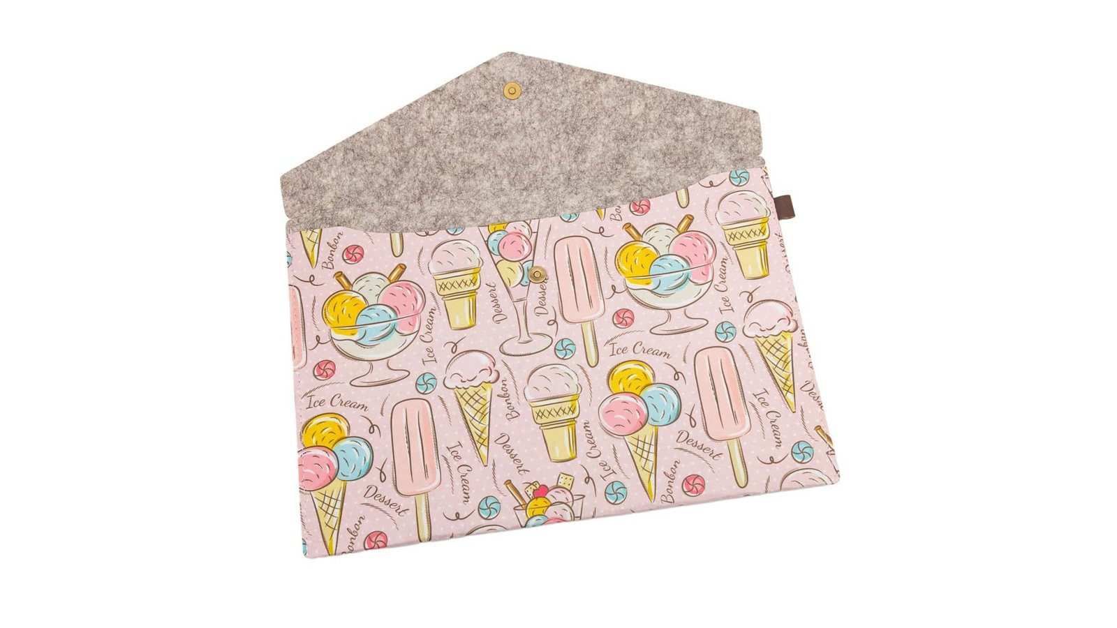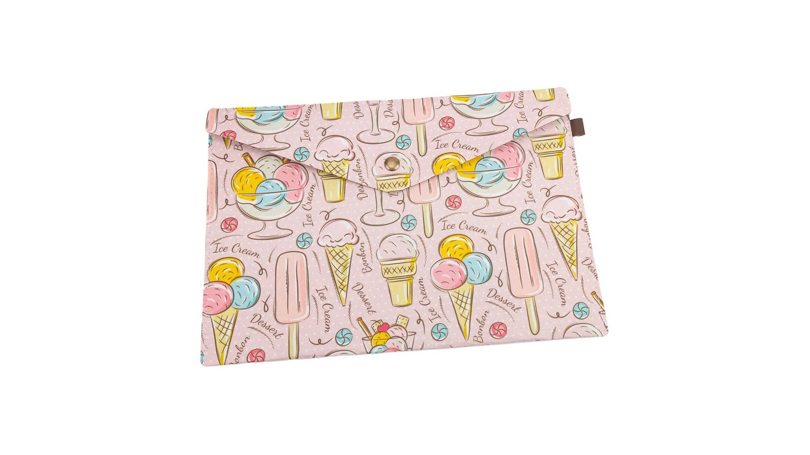 Plic textil cu capsă magnetică - model inghetata roz - 33x23.5cm