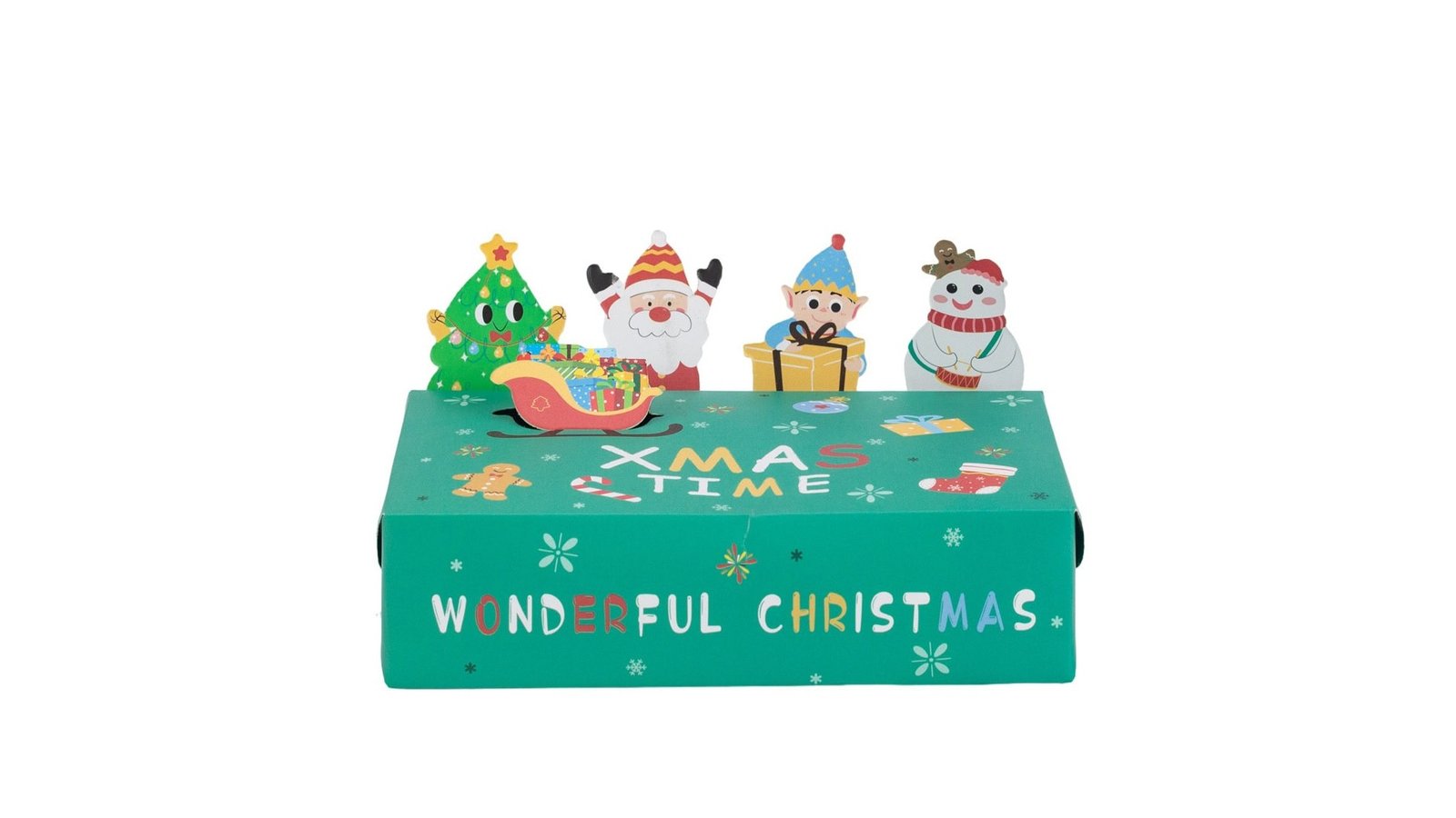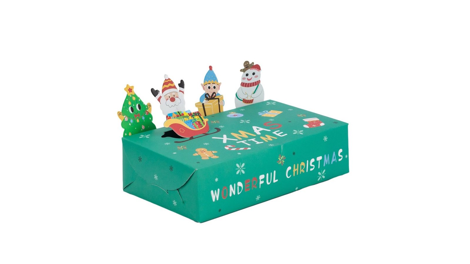 Cutie de Crăciun cu figurine 3D - verde are un design festiv și figurine 3D jucăușe, cutia devine un decor minunat pentru sezonul sărbătorilor Caracteristici: Design festiv: Cutia este decorată cu motive specifice Crăciunului, cum ar fi fulgi de nea, steluțe și inscripții haioase, creând o atmosferă caldă și primitoare Figurine 3D: Personajele îndrăgite ale lui Moș Crăciun, a elfului, a omului de zăpadă și a bradului de Crăciun, realizate în format 3D, adaugă un plus de farmec și originalitate Material de calitate: Cutia este fabricată dintr-un material rezistent și ușor de manipulat, asigurând o durată lungă de viață Utilizare: Ambalaj pentru cadouri: Cutia este perfectă pentru a împacheta cadourile cu stil și pentru a le oferi o notă personală Decor de Crăciun: Poate fi folosită ca eleme