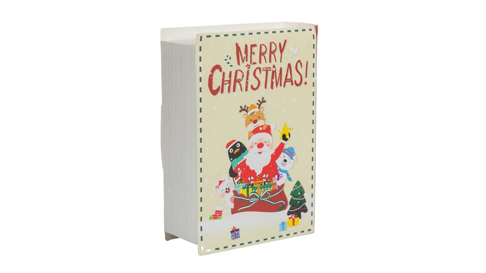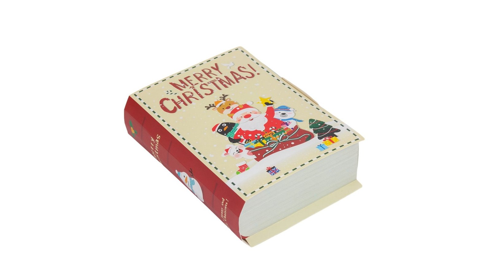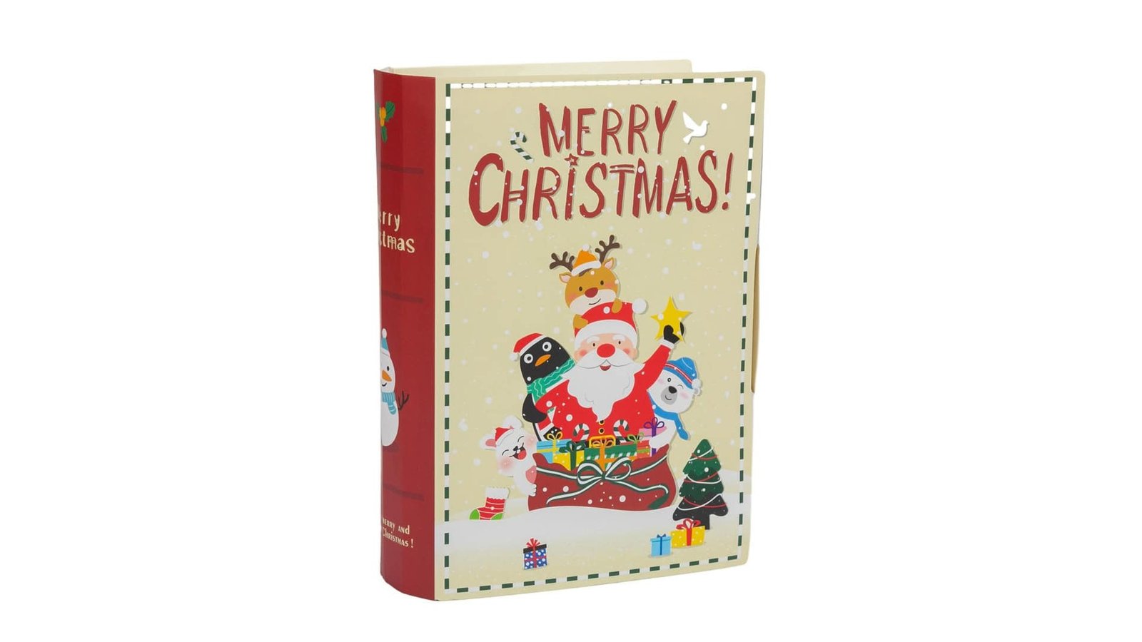 Cutie carte pliabilă de Crăciun - bej este o modalitate originală și festivă de a împacheta cadourile de Crăciun. Cu un design adorabil, cu Moș Crăciun și animalele sale, cutia se va potrivi perfect în orice decor de sărbători Caracteristici: Design unic: Forma de carte și ilustrațiile festive fac din această cutie un cadou în sine Pliabilă și compactă: Ușor de depozitat și transportat, ocupă puțin spațiu Material de calitate: Fabricată din materiale rezistente, asigură o bună protecție a cadourilor Utilizare: Ambalare cadouri: Ideală pentru a împacheta mici cadouri, bijuterii, bani sau dulciuri Decor de Crăciun: Poate fi folosită ca element decorativ pe masa de Crăciun sau pe un raft Depozitare: Perfectă pentru a păstra mici obiecte, cum ar fi bilete, fotografii sau felicitări Cadou în si