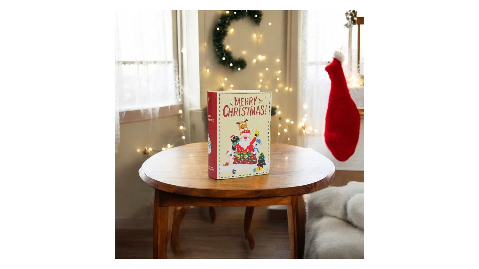 Cutie carte pliabilă de Crăciun - bej este o modalitate originală și festivă de a împacheta cadourile de Crăciun. Cu un design adorabil, cu Moș Crăciun și animalele sale, cutia se va potrivi perfect în orice decor de sărbători Caracteristici: Design unic: Forma de carte și ilustrațiile festive fac din această cutie un cadou în sine Pliabilă și compactă: Ușor de depozitat și transportat, ocupă puțin spațiu Material de calitate: Fabricată din materiale rezistente, asigură o bună protecție a cadourilor Utilizare: Ambalare cadouri: Ideală pentru a împacheta mici cadouri, bijuterii, bani sau dulciuri Decor de Crăciun: Poate fi folosită ca element decorativ pe masa de Crăciun sau pe un raft Depozitare: Perfectă pentru a păstra mici obiecte, cum ar fi bilete, fotografii sau felicitări Cadou în sine: Poate fi oferită ca un mic cadou separat sau împreună cu alt produs Beneficii: Originalitate: Un mod deosebit de a oferi cadouri și de a crea amintiri frumoase Versatilitate: Poate fi utilizată în multiple scopuri, atât în timpul sărbătorilor, cât și după aceea Estetică: Se integrează perfect în atmosfera festivă a Crăciunului