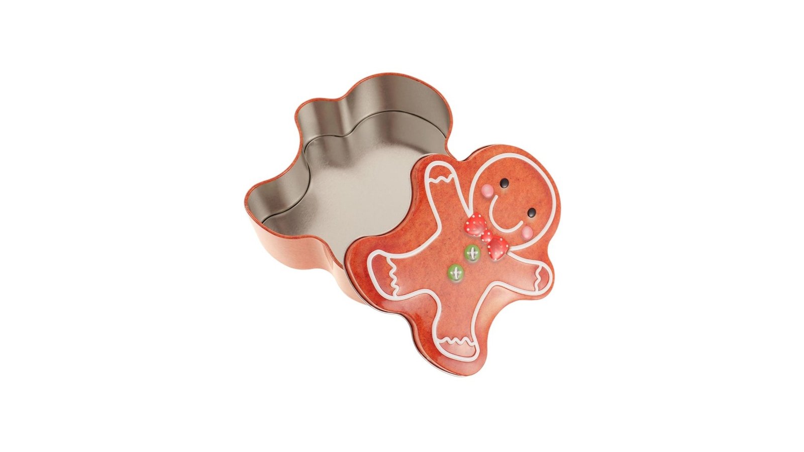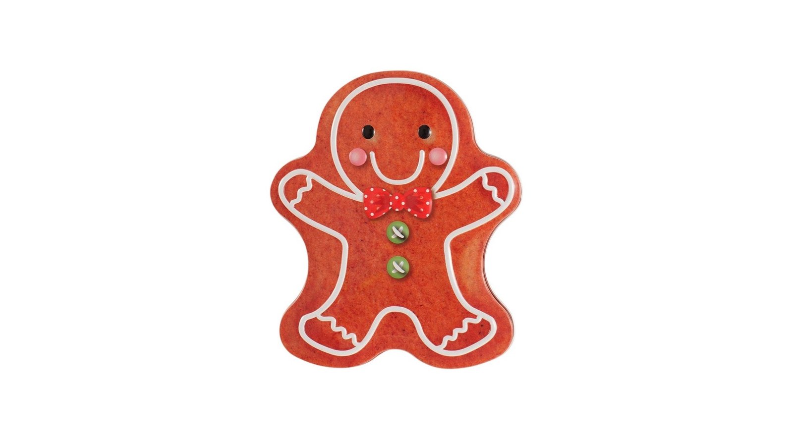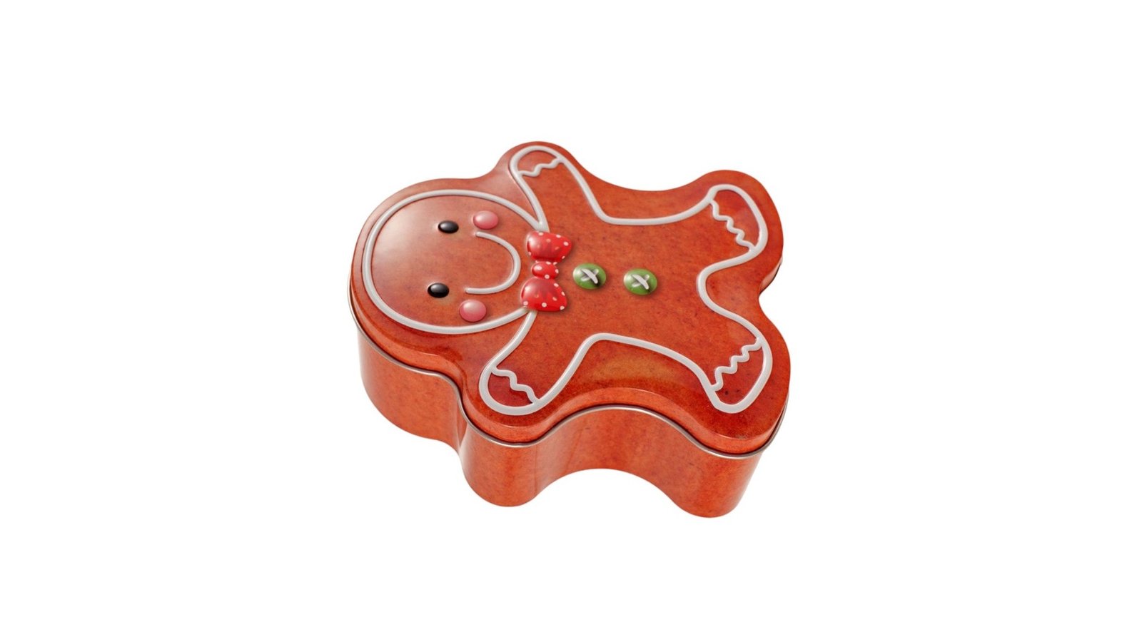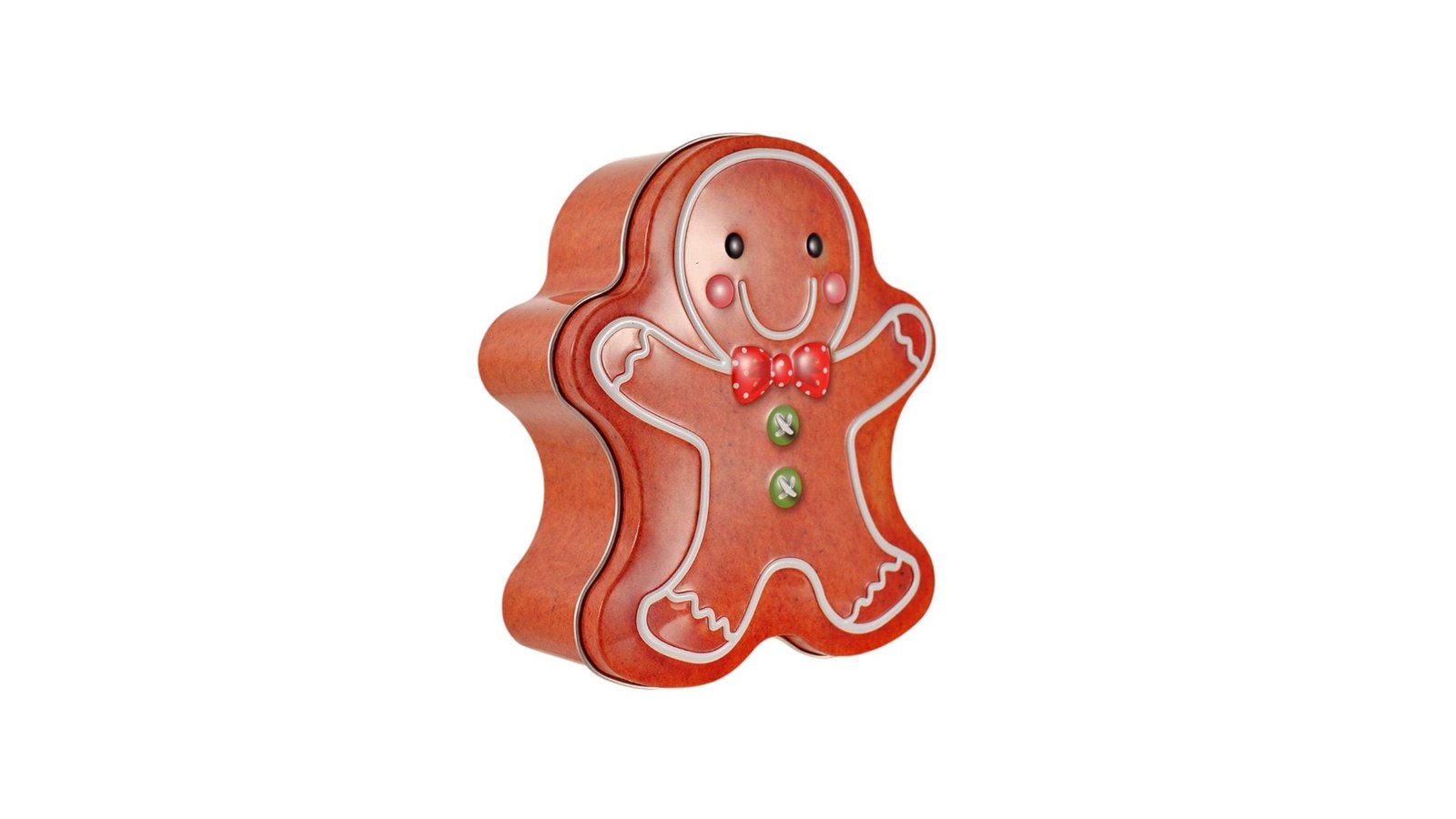 Cutie metalică cu formă de omuleț turtă dulce, este un accesoriu adorabil și funcțional, cu un design inspirat de tradiționalul om de turtă dulce, această cutie aduce un plus de veselie și farmec festiv. Ideală pentru a depozita dulciuri, biscuiți sau mici cadouri, cutia este realizată din metal durabil, ceea ce o face perfectă atât ca obiect decorativ, cât și ca recipient practic. Caracteristici: Design atractiv, în formă de omuleț de turtă dulce, specific Crăciunului. Fabricată din metal durabil, potrivită pentru reutilizare pe termen lung. Capac ușor de deschis și închis, oferind acces rapid la conținut. Finisaj lucios, cu detalii festive, ce completează decorul de sărbători. Utilizare: Depozitarea biscuiților, bomboanelor sau altor dulciuri festive. Poate fi folosită ca ambalaj origina