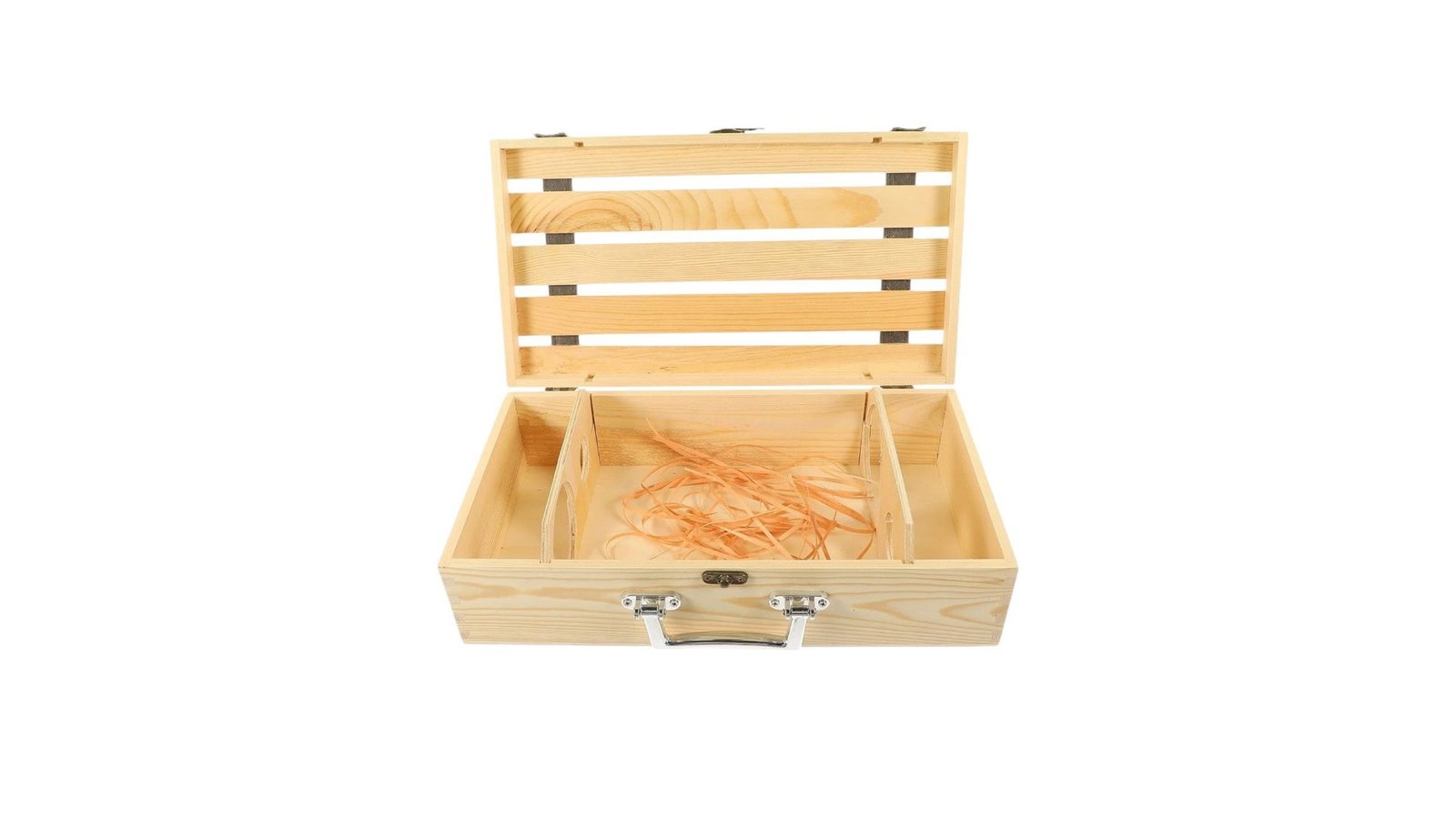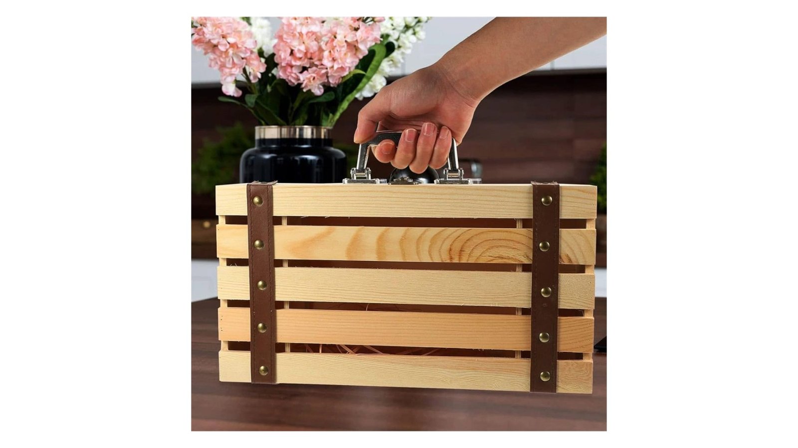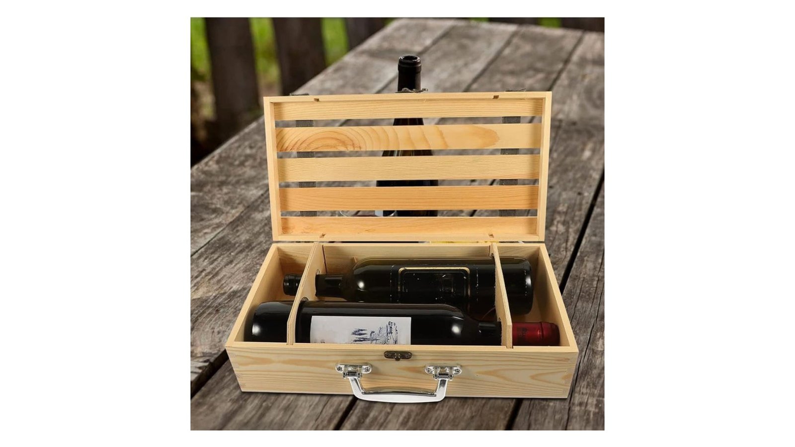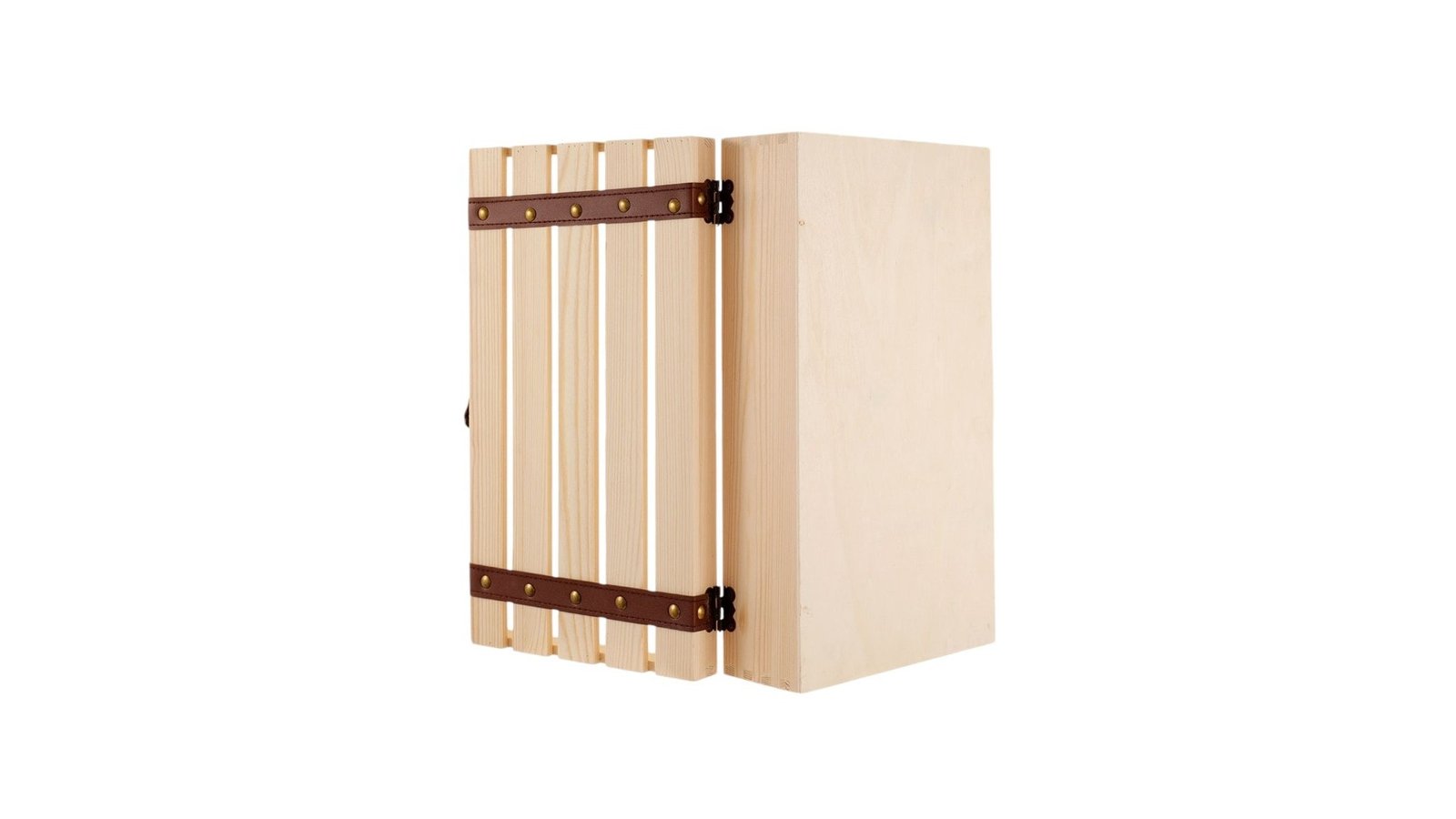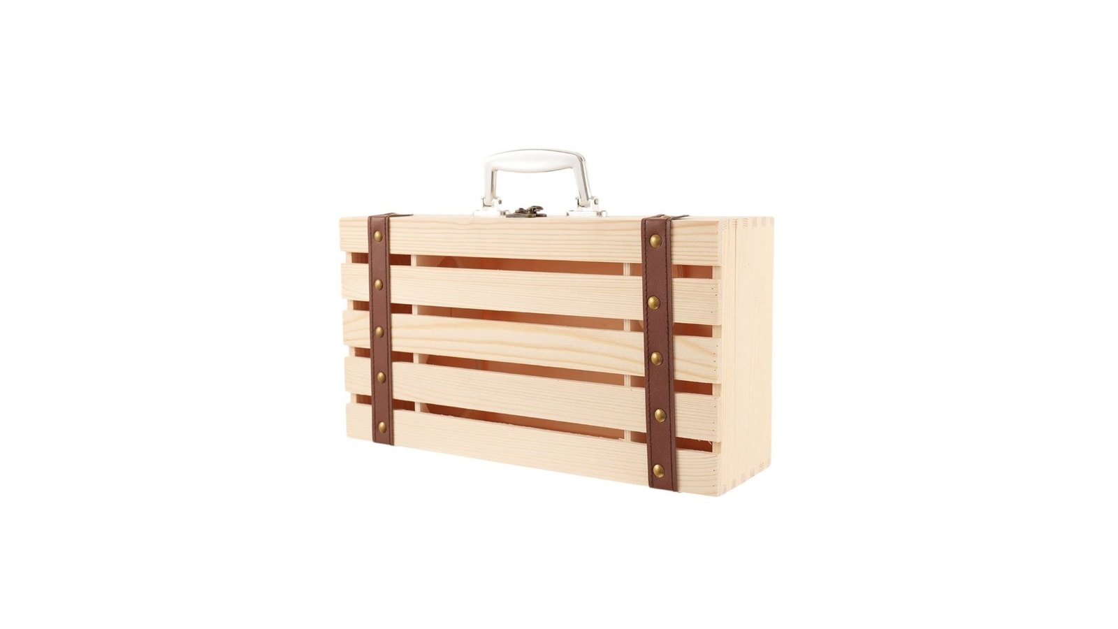 Cutie lemn tip cufăr pentru 2 sticle de vin, este un accesoriu elegant și robust, ideal pentru depozitarea sau oferirea în dar a vinurilor preferate. Construită din lemn de calitate, aceasta imită stilul clasic al unui cufăr, adăugând un aer vintage și sofisticat oricărei colecții de vinuri. În interior, cutia oferă suficient spațiu pentru două sticle de dimensiuni standard, protejându-le în siguranță și păstrându-le în bune condiții. Este perfectă atât pentru transportul vinului, cât și pentru prezentare, fiind un cadou rafinat pentru iubitorii de vin. Caracteristici: Cutie tip cufăr cu inserții de piele. Destinată sticlei clasice de vin de 750ml. Nu este compatibilă cu sticlele de șampanie sau vin spumant Închidere cu incuietoare Material nefinisat ce permite lăcuire/vopsire/pictat/print