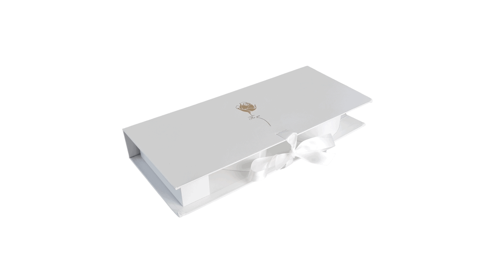Cutie dreptunghiulara model trandafir I love you - alb se poate folosi pentru ambalaje de flori, buchete, cadouri, produse handmade, decorațiuni și multe altele perfectă pentru evenimente cum ar fi: Crăciun, Moș Nicolae, Valentine’s Day, mărțișor, zile de naștere, etc. fundă satinată