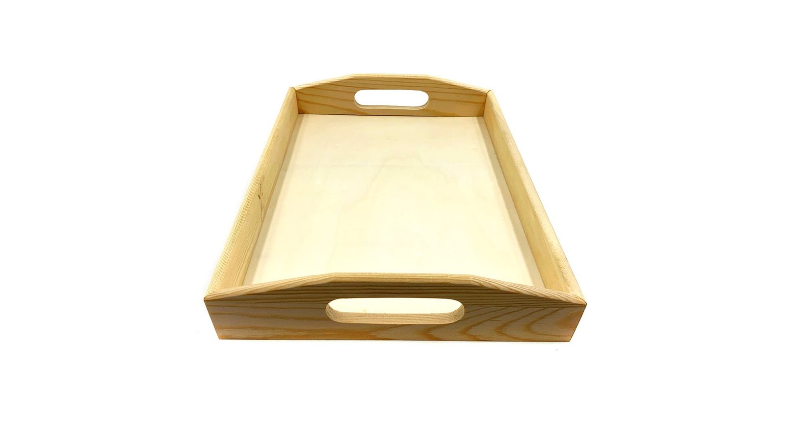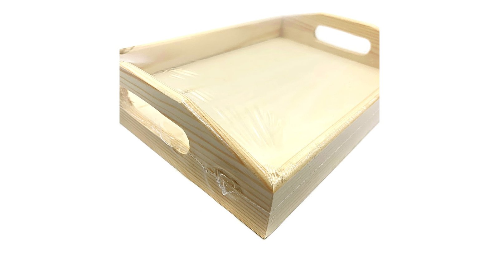 Tavă din lemn cu mânere fabricată din lemn de pin material nefinisat ce permite lăcuire/vopsire/pictare/printare ambalată în folie de plastic înălțime: 4,9cm ideală pentru personalizare prin tehnica servețelului, decoupage, pictat, pirogravură și altele folosită în proiectele DIY se poate combina împreună cu alte articole de lemn pentru seturi de botez, tăieri de moț, Valentine’s Day, mărțișor, Crăciun, Paște, etc.