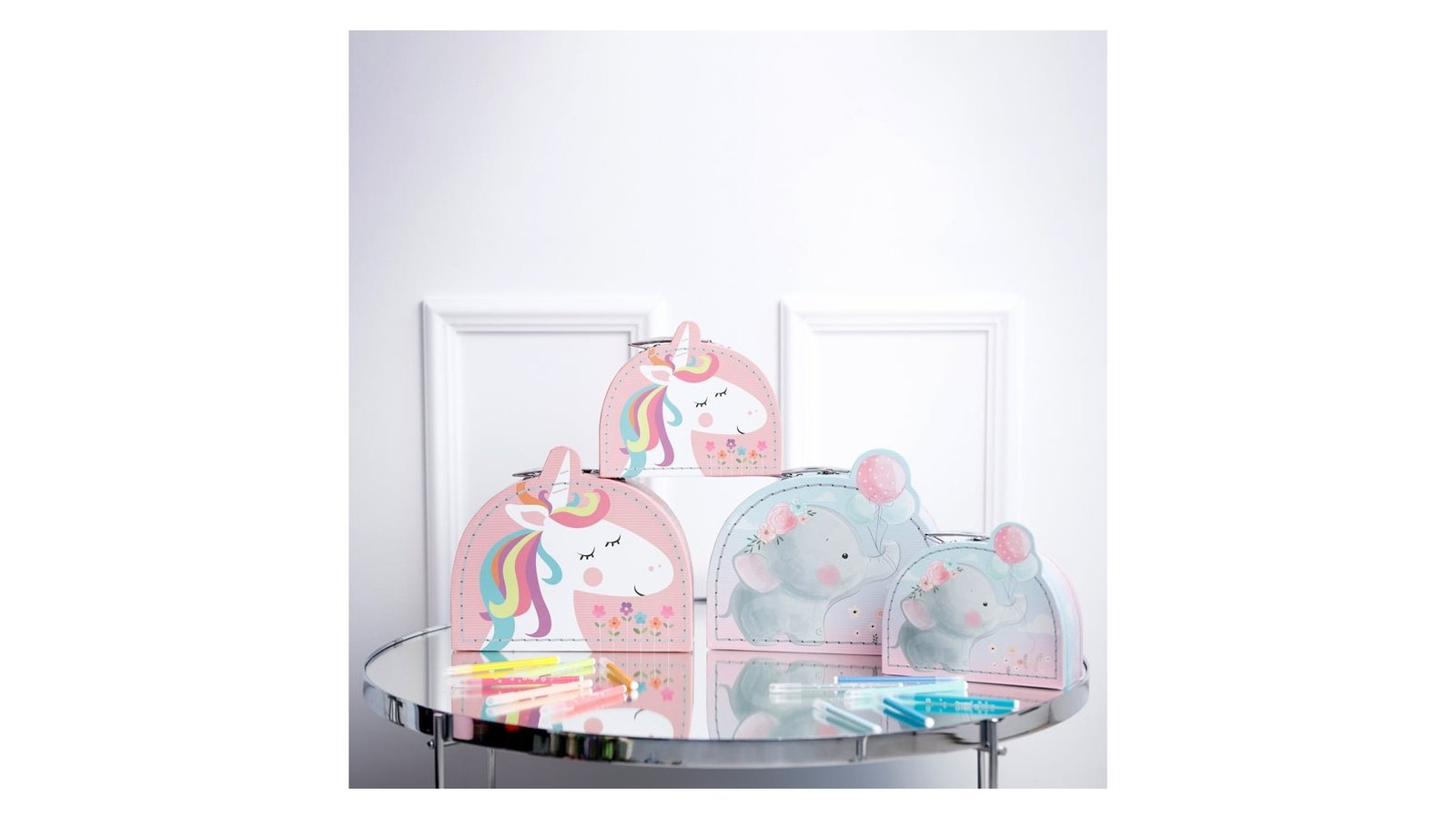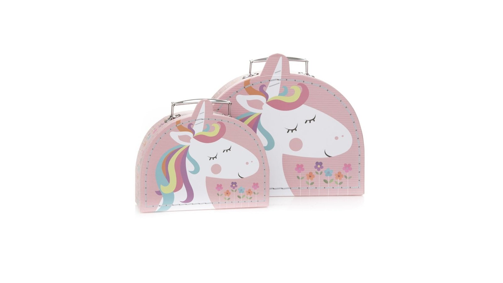 Set 2 cutii pentru copii - model unicorn se pot folosi pentru ambalaje de flori, buchete, trandafiri, cadouri, mărturii, produse handmade, decorațiuni și multe altele perfecte pentru evenimente cum ar fi: nunți, botezuri, Crăciun, Paște, Valentine's Day, mărțișor, 8 martie, petreceri pentru copii, zile de naștere, etc. set 2 cutii de dimensiuni diferite mâner metalic