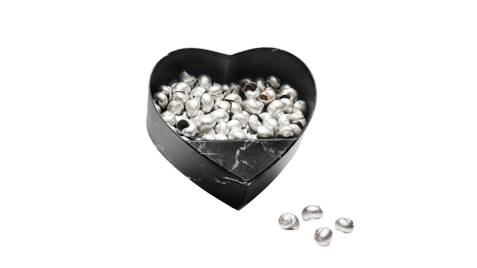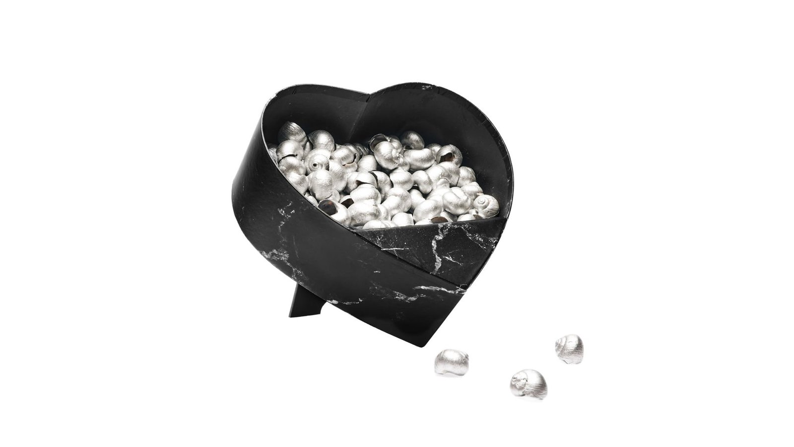 Cutie inimă deschisă cu suport - negru marmură