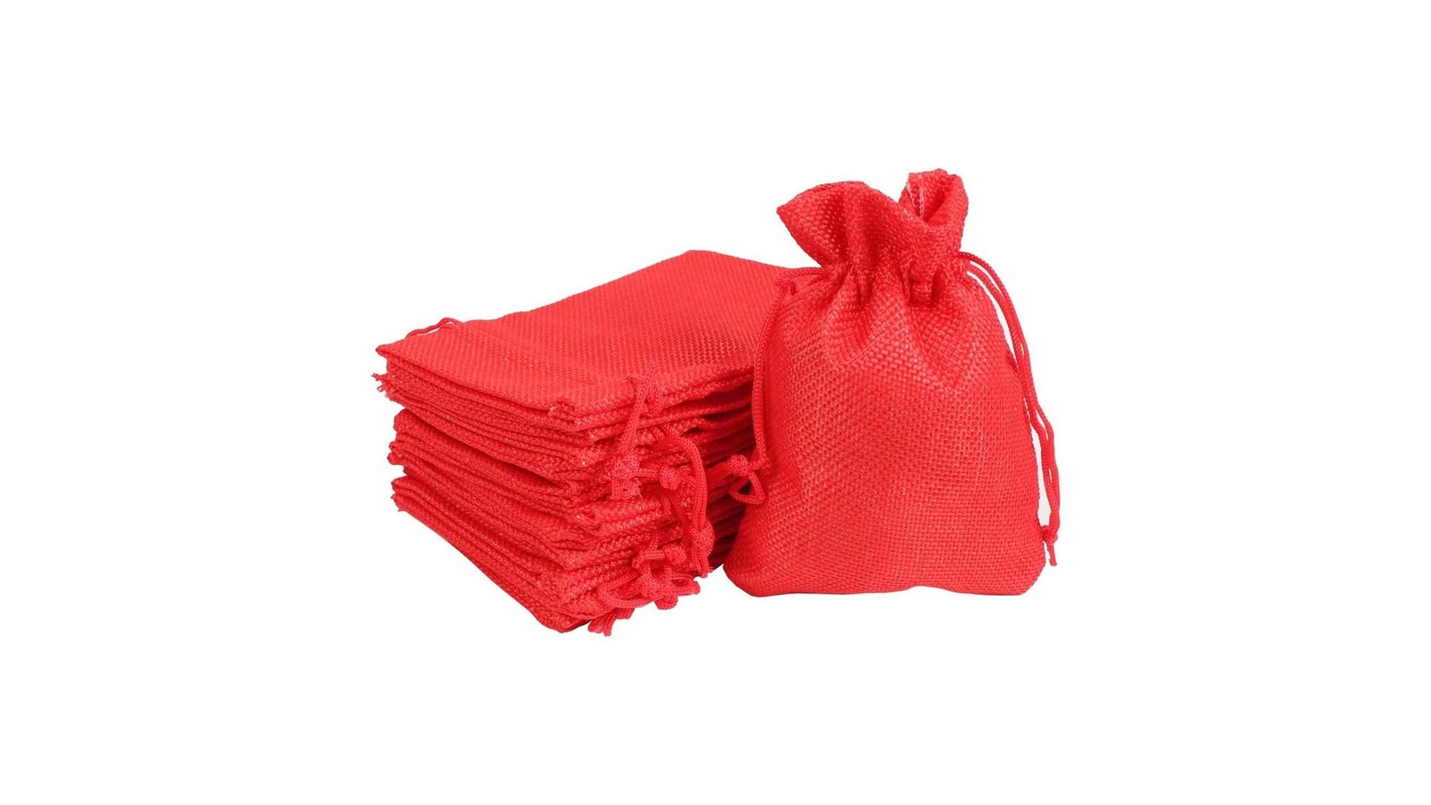 Săculeți țesătură sac cu sfoară 7x9cm (set 50 buc) - Roșu