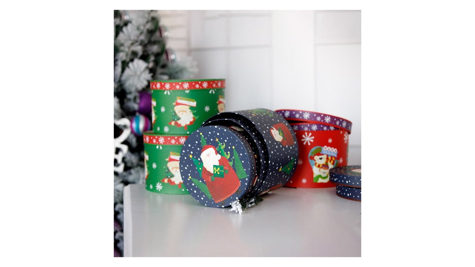 Set 3 cutii rotunde Crăciun – Moș plimbăreț