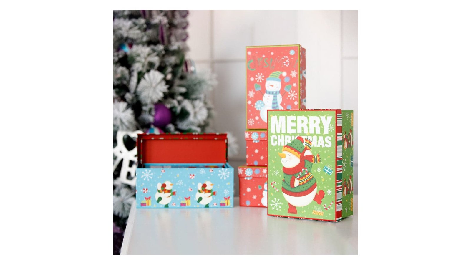 Set 3 cutii dreptunghiulare Crăciun – model om de zăpadă fericit