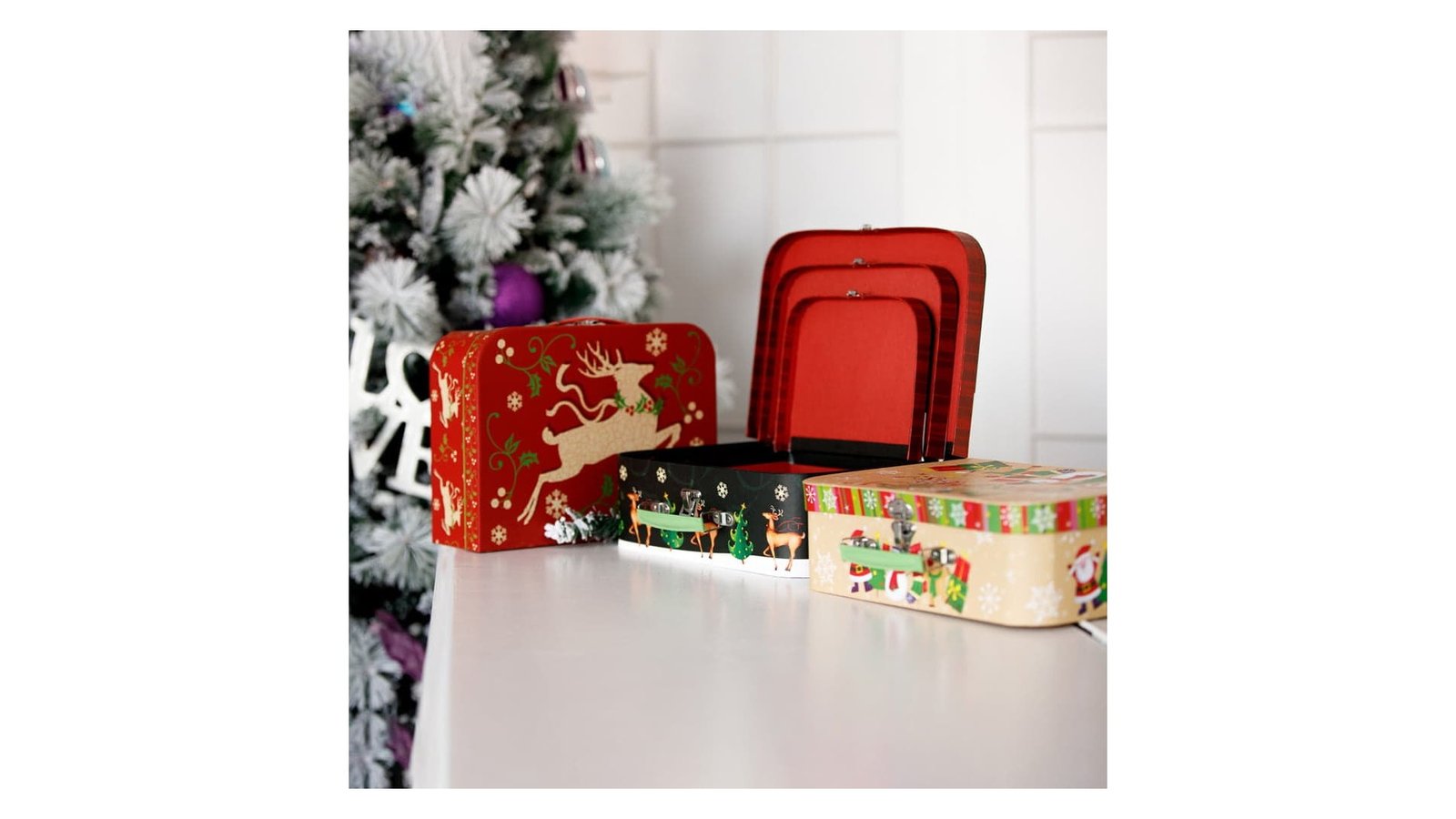 Set 3 cutii tip geantă Crăciun - model reni se pot folosi pentru ambalaje de flori, buchete, cadouri, produse handmade, decorațiuni și multe altele perfecte pentru evenimente cum ar fi: Crăciun, Moș Nicolae, petreceri pentru copii, zile de naștere, etc.