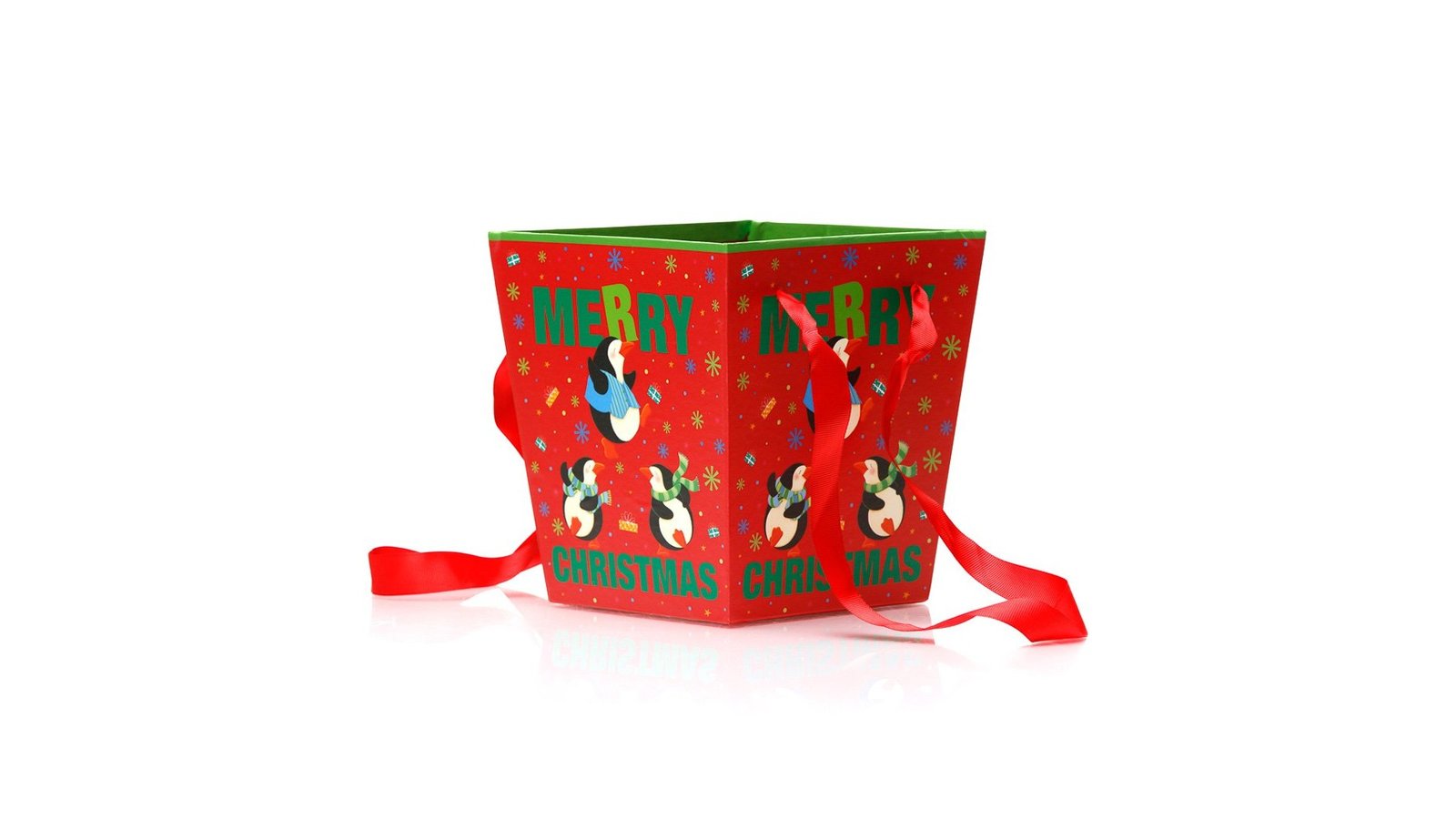 Cutie trapez Crăciun - model pinguinii dansatori se poate folosi pentru ambalaje de flori, buchete, cadouri, produse handmade, decorațiuni și multe altele perfectă pentru evenimente cum ar fi: Crăciun, Moș Nicolae, petreceri pentru copii, zile de naștere, etc.