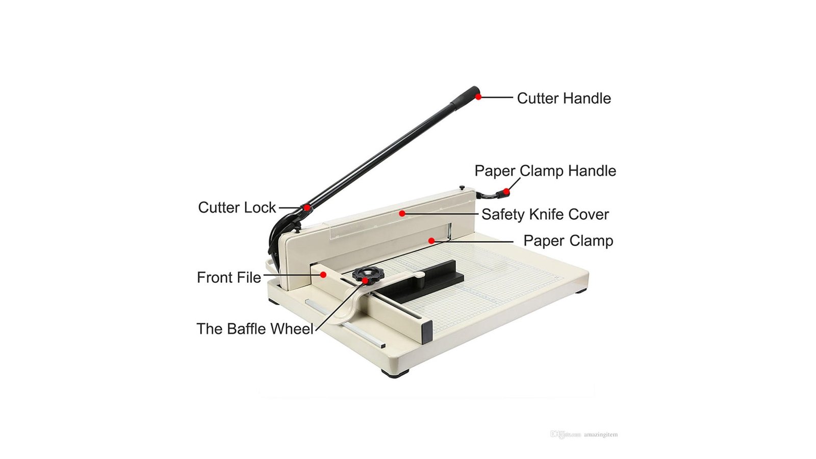 Ghilotina tipografică A3 este un echipament specializat pentru tăiere de capacitate mare, având dimensiunea de tăiere 410mm Este destinată volumului ridicat de lucru, capacitatea maximă recomandată fiind de 400 coli de 70gr/mp Cuțitul ghilotinei este fabricat din oțel masiv de calitate înaltă, foarte bine ascuțit și este demontabil pentru o ușoară ascuțire/schimbare Ghilotina este prevazută cu un sistem reglabil de poziționare precisă a hârtiei, blocarea acesteia se face manual prin rotirea unui mâner, sistemul de fixare fiind vital pentru tăierea cât mai precisă și pentru a nu se deplasa materialul în timpul tăierii Structură foarte solidă, integral din metal Gradații în cm și în inch Mâner din cauciuc