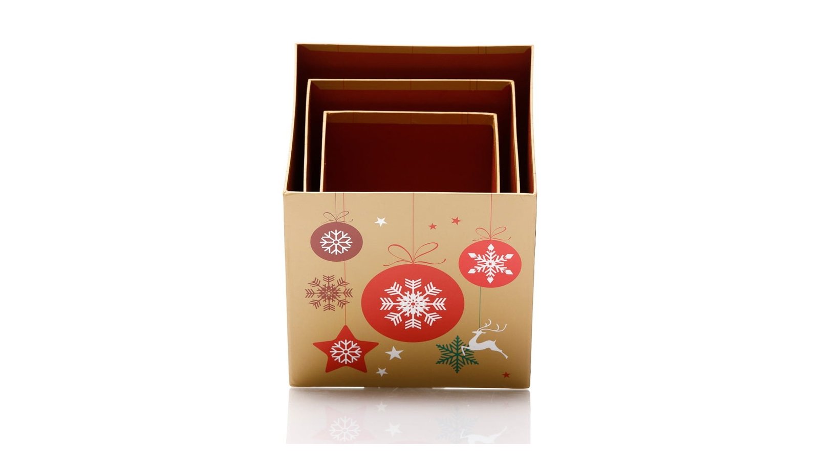 Set 3 cutii pătrate de Crăciun – model globuri multicolore se pot folosi pentru ambalaje de flori, buchete, cadouri, produse handmade, decorațiuni și multe altele perfecte pentru evenimente cum ar fi: Crăciun, Moș Nicolae, petreceri pentru copii, zile de naștere, etc.