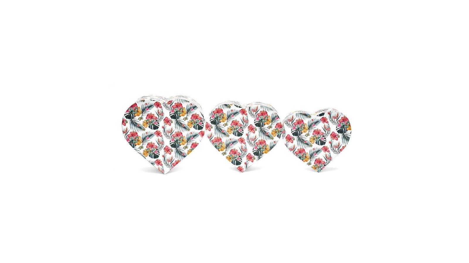 Set 3 cutii inimă cu flori - alb
