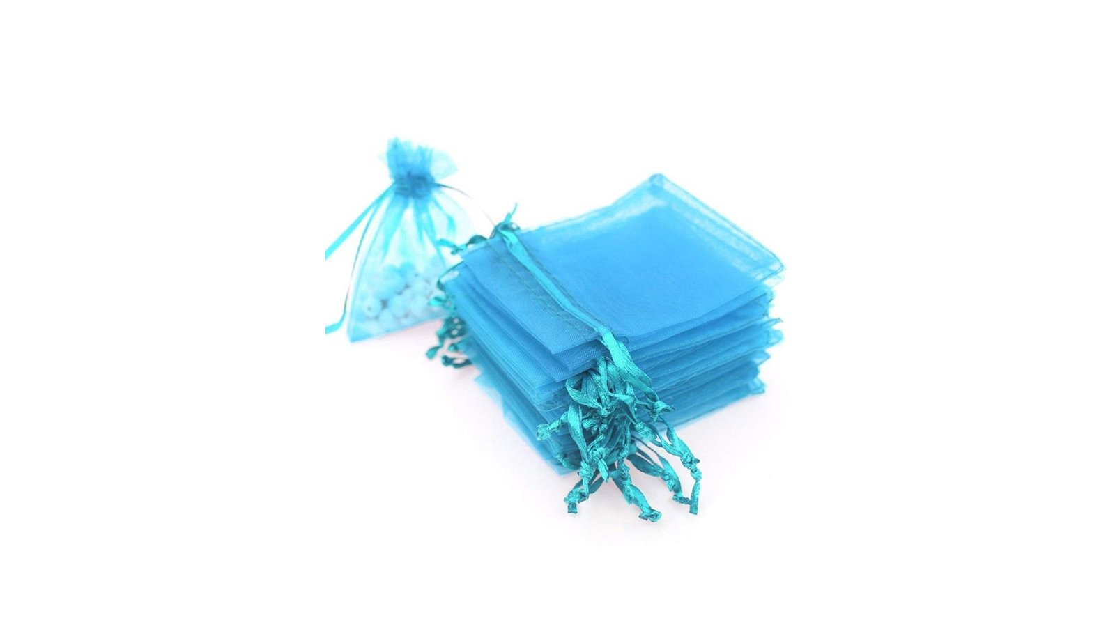 Săculeți organza cu șnur satin 9x12cm (set 100 buc) - Turcoaz