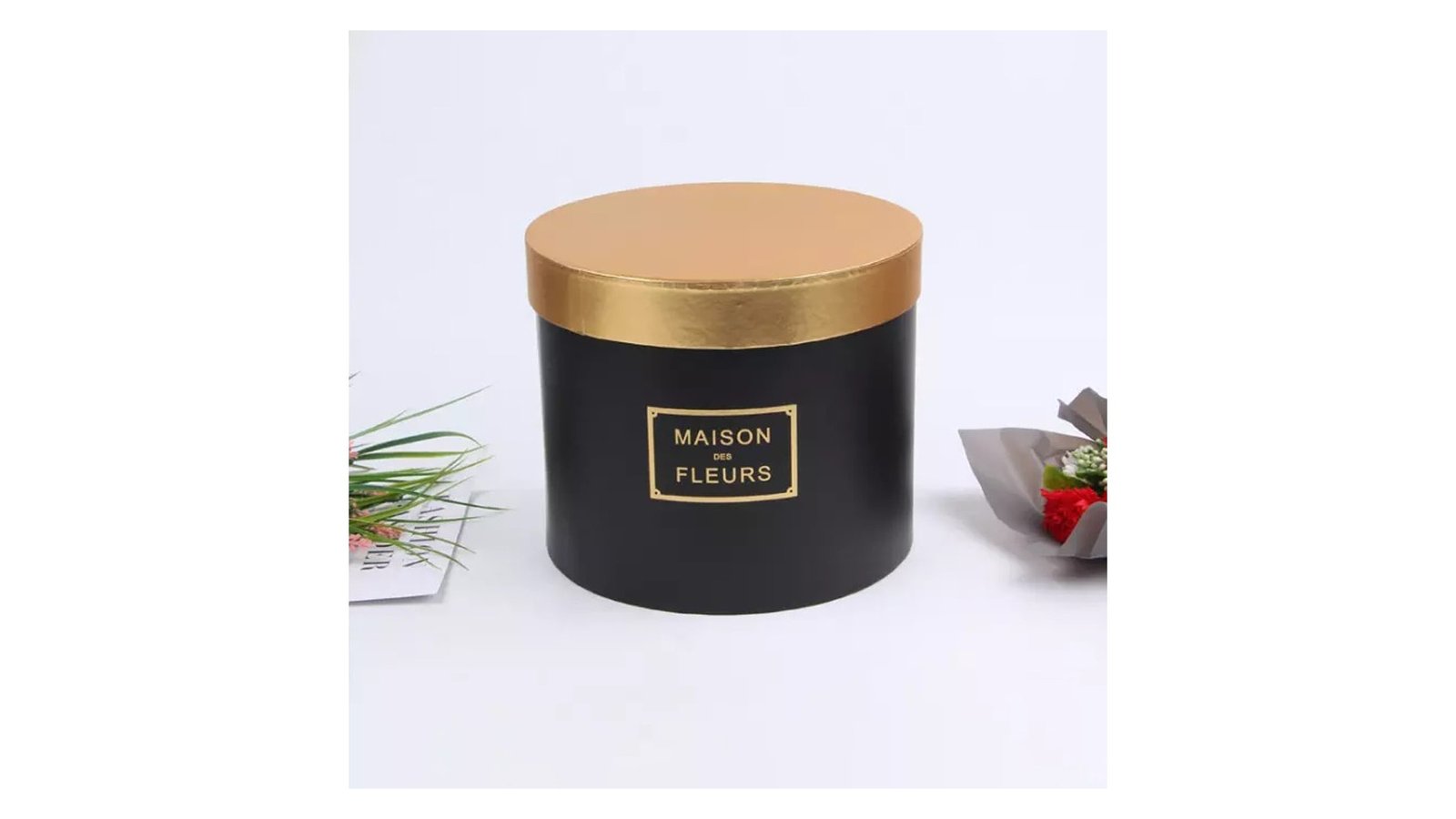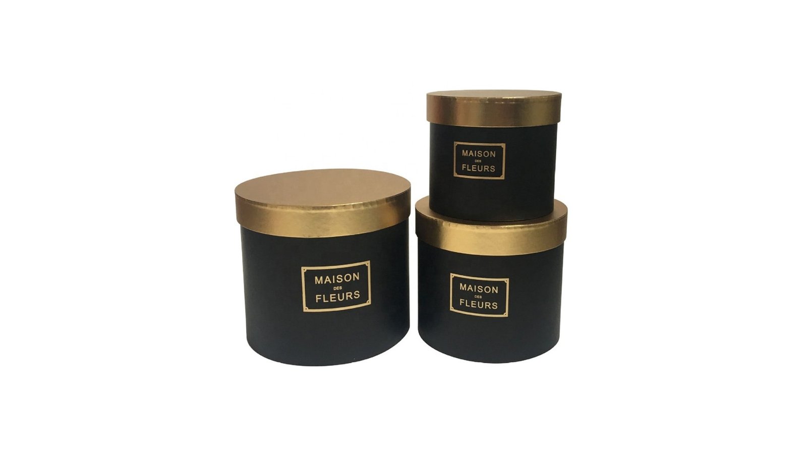 Set 3 cutii rotunde Maison des Fleurs cu capac auriu - negru se pot folosi pentru ambalaje de flori, buchete, trandafiri, cadouri, mărturii, produse handmade, decorațiuni și multe altele perfecte pentru evenimente cum ar fi: nunți, botezuri, Crăciun, Paște, Valentine's Day, mărțișor, 8 martie, petreceri pentru copii, zile de naștere, etc. set 3 cutii de dimensiuni diferite