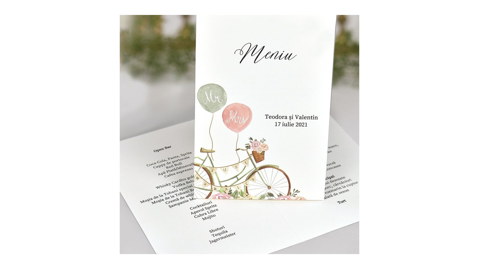 Succesul realizarii unui eveniment fara cusur consta in atentia la detalii, cum ar fi meniurile. De aceea va propunem, [page_title] produsul ideal pentru un aranjament perfect al mesei. Modelele concepute de noi sunt de cea mai inalta calitate, personalizate si lucrate manual. Cum comand? Pentru a putea comanda trebuie sa urmati cativa pasi simpli: Alege varianta in care doresti sa achizitionezi meniurile: “Tiparite” sau “Tiparite si Asamblate”. Completeaza formularul cu detaliile evenimentului, disponibil in pagina de produs. Selecteaza cantitatea Plaseaza comanda Ce inseamna asamblare? Asamblarea consta in lipire, decupare, indoire, lipire accesorii, lipire funda, legare panglica etc. in functie de model. In cat timp este gata comanda? Timpul mediu de realizare este cuprins intre 5-7 zile lucratoare. Ce se intampla dupa ce ati plasat comanda? Un coleg va reveni la dvs. cu un apel telefonic pentru confirmarea comenzii. Dupa confirmarea telefonica, veti primi pe whatssapp/mail macheta meniului pentru verificarea acesteia. Doar dupa confirmarea dumneavoastra meniurile se vor tipari. Pentru text puteti alege orice culoare doriti, cu exceptia culorilor auriu si argintiu.