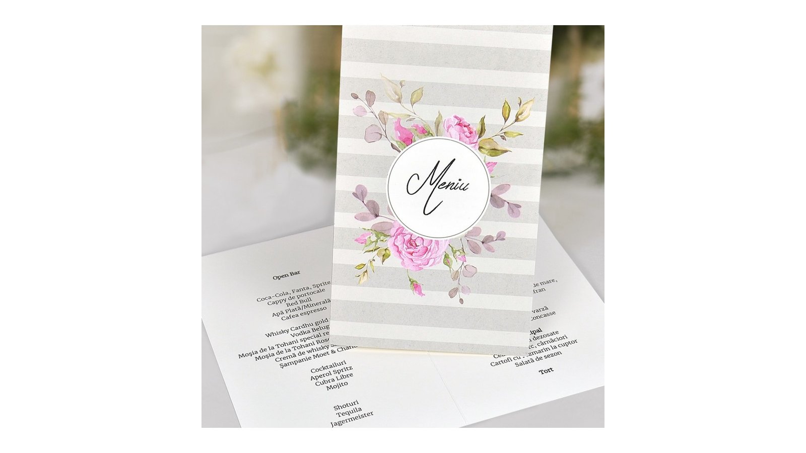 Succesul realizarii unui eveniment fara cusur consta in atentia la detalii, cum ar fi meniurile. De aceea va propunem, [page_title] produsul ideal pentru un aranjament perfect al mesei. Modelele concepute de noi sunt de cea mai inalta calitate, personalizate si lucrate manual. Cum comand? Pentru a putea comanda trebuie sa urmati cativa pasi simpli: Alege varianta in care doresti sa achizitionezi meniurile: “Tiparite” sau “Tiparite si Asamblate”. Completeaza formularul cu detaliile evenimentului, disponibil in pagina de produs. Selecteaza cantitatea Plaseaza comanda Ce inseamna asamblare? Asamblarea consta in lipire, decupare, indoire, lipire accesorii, lipire funda, legare panglica etc. in functie de model. In cat timp este gata comanda? Timpul mediu de realizare este cuprins intre 5-7 zile lucratoare. Ce se intampla dupa ce ati plasat comanda? Un coleg va reveni la dvs. cu un apel telefonic pentru confirmarea comenzii. Dupa confirmarea telefonica, veti primi pe whatssapp/mail macheta meniului pentru verificarea acesteia. Doar dupa confirmarea dumneavoastra meniurile se vor tipari. Pentru text puteti alege orice culoare doriti, cu exceptia culorilor auriu si argintiu.