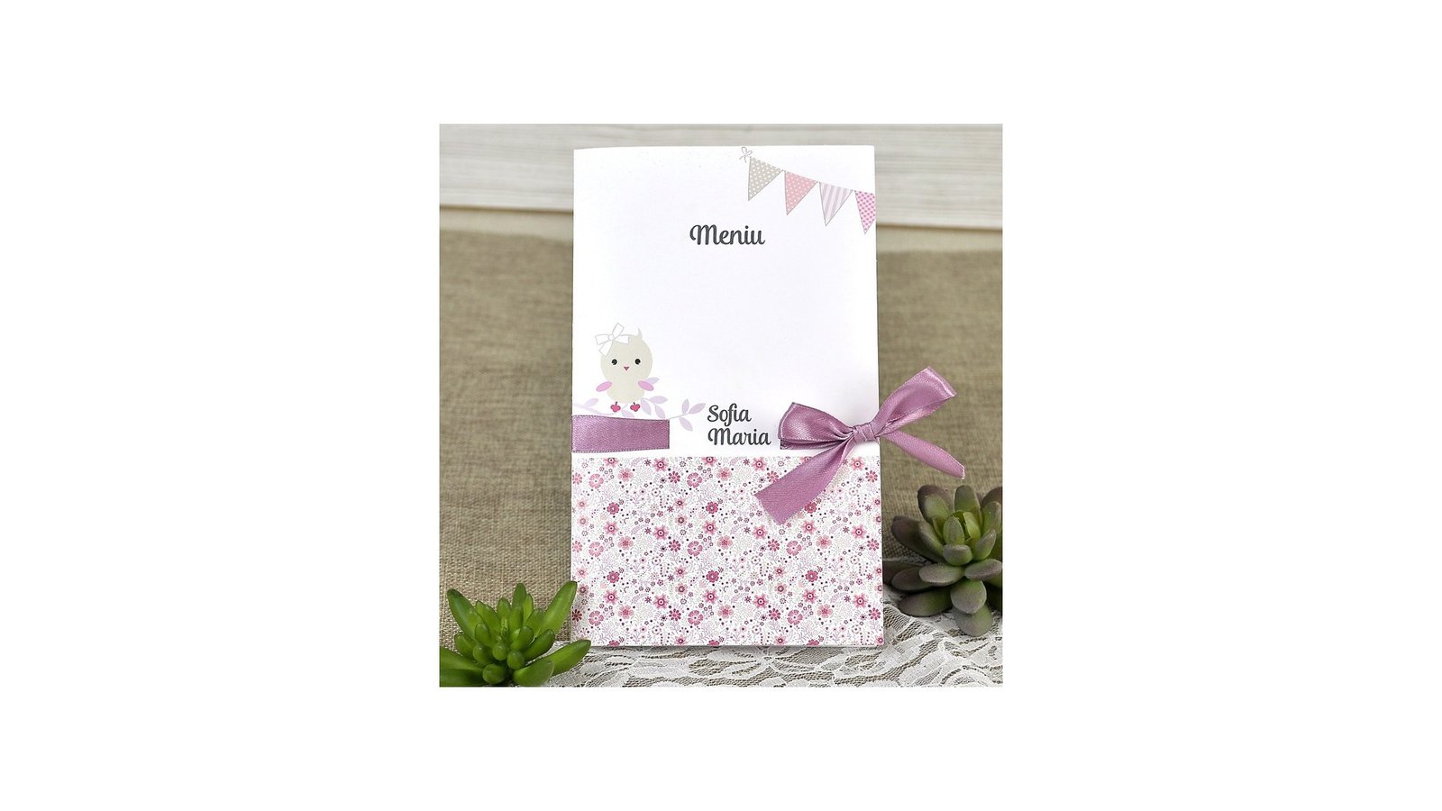 Succesul realizarii unui eveniment fara cusur consta in atentia la detalii, cum ar fi meniurile. De aceea va propunem, [page_title] produsul ideal pentru un aranjament perfect al mesei. Modelele concepute de noi sunt de cea mai inalta calitate, personalizate si lucrate manual. Cum comand? Pentru a putea comanda trebuie sa urmati cativa pasi simpli: Alege varianta in care doresti sa achizitionezi meniurile: “Tiparite” sau “Tiparite si Asamblate”. Completeaza formularul cu detaliile evenimentului, disponibil in pagina de produs. Selecteaza cantitatea Plaseaza comanda Ce inseamna asamblare? Asamblarea consta in lipire, decupare, indoire, lipire accesorii, lipire funda, legare panglica etc. in functie de model. In cat timp este gata comanda? Timpul mediu de realizare este cuprins intre 5-7 zile lucratoare. Ce se intampla dupa ce ati plasat comanda? Un coleg va reveni la dvs. cu un apel telefonic pentru confirmarea comenzii. Dupa confirmarea telefonica, veti primi pe whatssapp/mail macheta meniului pentru verificarea acesteia. Doar dupa confirmarea dumneavoastra meniurile se vor tipari. Pentru text puteti alege orice culoare doriti, cu exceptia culorilor auriu si argintiu.