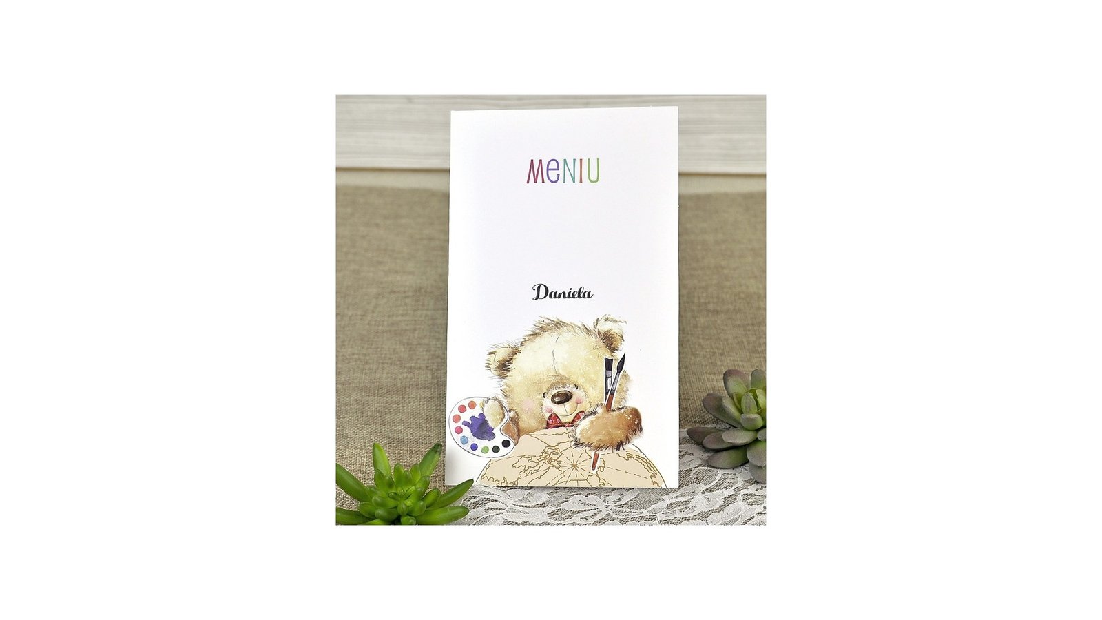 Succesul realizarii unui eveniment fara cusur consta in atentia la detalii, cum ar fi meniurile. De aceea va propunem, [page_title] produsul ideal pentru un aranjament perfect al mesei. Modelele concepute de noi sunt de cea mai inalta calitate, personalizate si lucrate manual. Cum comand? Pentru a putea comanda trebuie sa urmati cativa pasi simpli: Alege varianta in care doresti sa achizitionezi meniurile: “Tiparite” sau “Tiparite si Asamblate”. Completeaza formularul cu detaliile evenimentului, disponibil in pagina de produs. Selecteaza cantitatea Plaseaza comanda Ce inseamna asamblare? Asamblarea consta in lipire, decupare, indoire, lipire accesorii, lipire funda, legare panglica etc. in functie de model. In cat timp este gata comanda? Timpul mediu de realizare este cuprins intre 5-7 zile lucratoare. Ce se intampla dupa ce ati plasat comanda? Un coleg va reveni la dvs. cu un apel telefonic pentru confirmarea comenzii. Dupa confirmarea telefonica, veti primi pe whatssapp/mail macheta meniului pentru verificarea acesteia. Doar dupa confirmarea dumneavoastra meniurile se vor tipari. Pentru text puteti alege orice culoare doriti, cu exceptia culorilor auriu si argintiu.