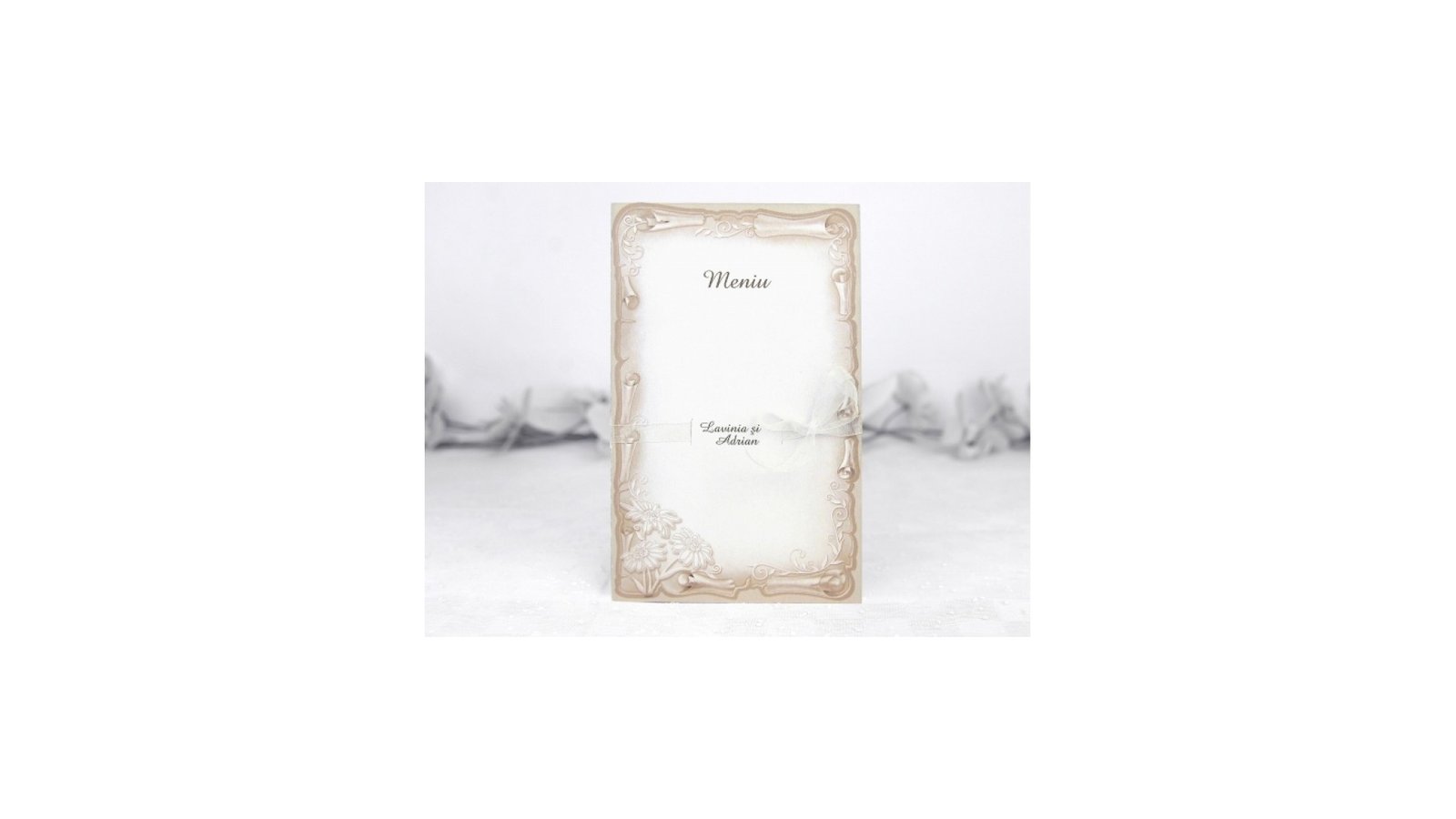 Succesul realizarii unui eveniment fara cusur consta in atentia la detalii, cum ar fi meniurile. De aceea va propunem, [page_title] produsul ideal pentru un aranjament perfect al mesei. Modelele concepute de noi sunt de cea mai inalta calitate, personalizate si lucrate manual. Cum comand? Pentru a putea comanda trebuie sa urmati cativa pasi simpli: Alege varianta in care doresti sa achizitionezi meniurile: “Tiparite” sau “Tiparite si Asamblate”. Completeaza formularul cu detaliile evenimentului, disponibil in pagina de produs. Selecteaza cantitatea Plaseaza comanda Ce inseamna asamblare? Asamblarea consta in lipire, decupare, indoire, lipire accesorii, lipire funda, legare panglica etc. in functie de model. In cat timp este gata comanda? Timpul mediu de realizare este cuprins intre 5-7 zile lucratoare. Ce se intampla dupa ce ati plasat comanda? Un coleg va reveni la dvs. cu un apel telefonic pentru confirmarea comenzii. Dupa confirmarea telefonica, veti primi pe whatssapp/mail macheta meniului pentru verificarea acesteia. Doar dupa confirmarea dumneavoastra meniurile se vor tipari. Pentru text puteti alege orice culoare doriti, cu exceptia culorilor auriu si argintiu.