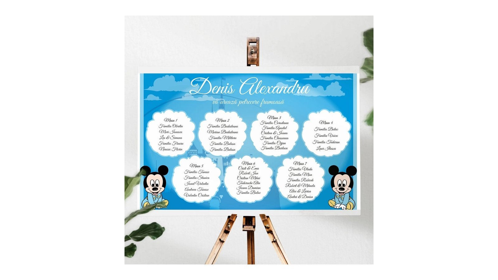 Succesul realizarii unui eveniment fara cusur consta in atentia la detalii, cum ar fi opisul sau asezarea la mese. De aceea va propunem, [page_title] produsul ideal pentru o mai buna organizare a evenimentului. Modelele concepute de noi sunt de cea mai inalta calitate, personalizate si lucrate cu mare atentie. Cum comand? Pentru a putea comanda trebuie sa urmati cativa pasi simpli: Alege dimensiunea si materialul Incarca fisierul cu asezarea la mese Plaseaza comanda Cum stiu ce material sa aleg? Opisul din carton/hartie de 200gr este potrivit pentru evenimentul unde la intrare este prezent un stativ de tip rama, deoarece acesta fiind foarte usor ca si greutate, nu poate sta fix si este si foarte fragil. Opisul din PVC este potrivit pentru stativul de tip sevalet, acesta fiind putin mai greu ca si greutate nu este la fel de fragil. In cat timp este gata comanda? Timpul mediu de realizare este cuprins intre 5-7 zile lucratoare. Ce se intampla dupa ce ati plasat comanda? Un coleg va reveni la dvs. cu un apel telefonic pentru confirmarea comenzii. Dupa confirmarea telefonica, veti primi pe whatssapp/mail macheta pentru verificarea acesteia. Doar dupa confirmarea dumneavoastra opisul se va tipari. Pentru text puteti alege orice culoare doriti, cu exceptia culorilor auriu si argintiu.