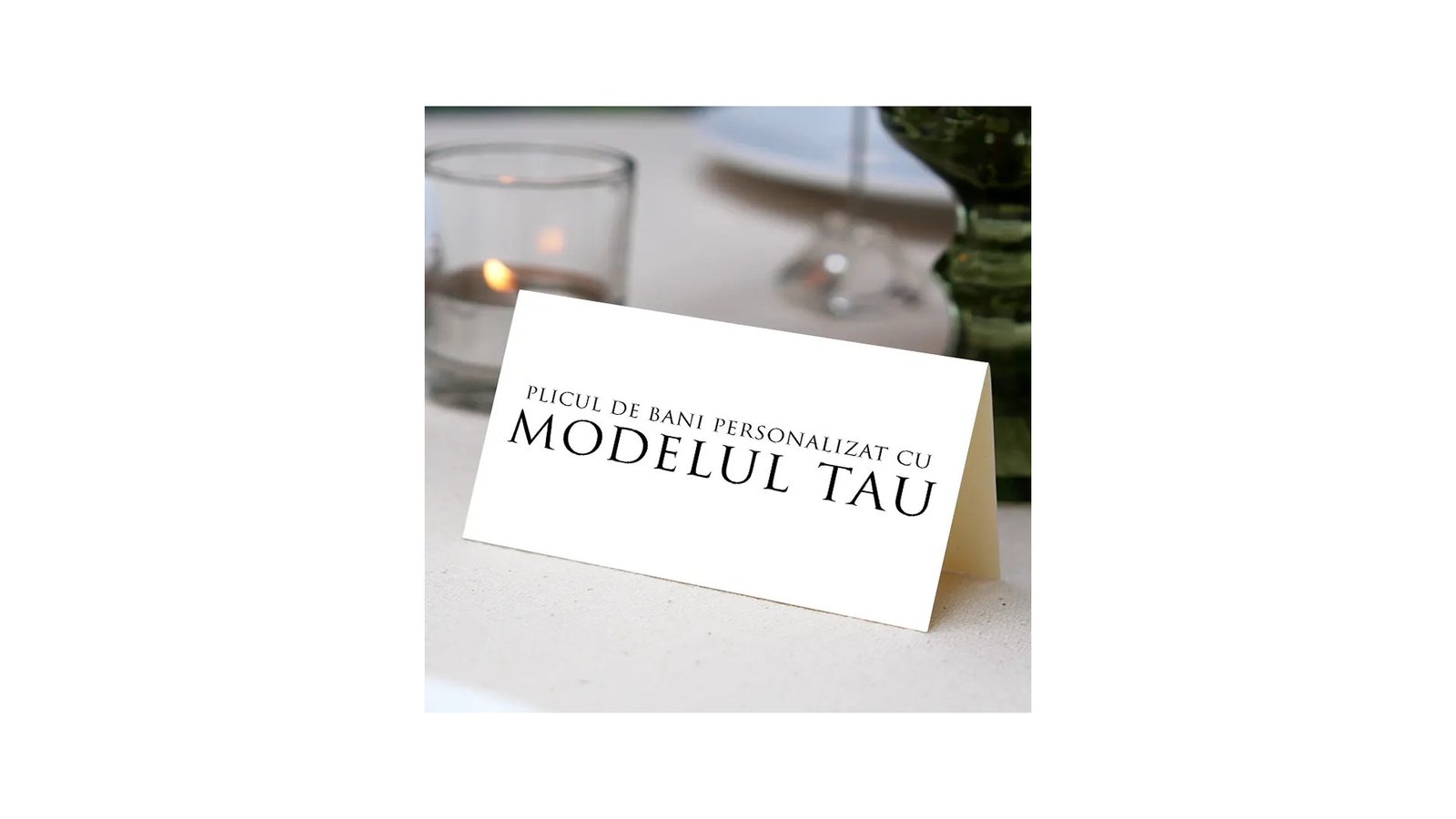 Succesul realizarii unui eveniment fara cusur consta in atentia la detalii, cum ar fi place cardul, plicul pentru bani sau cardurile cu nume. De aceea va propunem, [page_title] produsul ideal pentru un aranjament perfect al mesei. Modelele concepute de noi sunt de cea mai inalta calitate, personalizate si lucrate manual. Cum comand? Pentru a putea comanda trebuie sa urmati cativa pasi simpli: Alege varianta in care doresti sa achizitionezi: “Tiparite” sau “Tiparite si Asamblate”. Completeaza formularul cu detaliile evenimentului, disponibil in pagina de produs. Selecteaza cantitatea Plaseaza comanda Ce inseamna asamblare? Asamblarea consta in lipire, decupare, indoire, lipire accesorii, lipire funda, legare panglica etc in functie de model. Daca alegeti varianta de plic fara asamblare, trebuie sa aveti in vedere ca plicurile de bani nu vin cu banda dublu adeziva. In cat timp este gata comanda? Timpul mediu de realizare este cuprins intre 5-7 zile lucratoare. Ce se intampla dupa ce ati plasat comanda? Un coleg va reveni la dvs. cu un apel telefonic pentru confirmarea comenzii. Dupa confirmarea telefonica, veti primi pe whatssapp/mail macheta plicului pentru verificarea acesteia. Doar dupa confirmarea dumneavoastra plicurile se vor tipari. Pentru text puteti alege orice culoare doriti, cu exceptia culorilor auriu si argintiu.