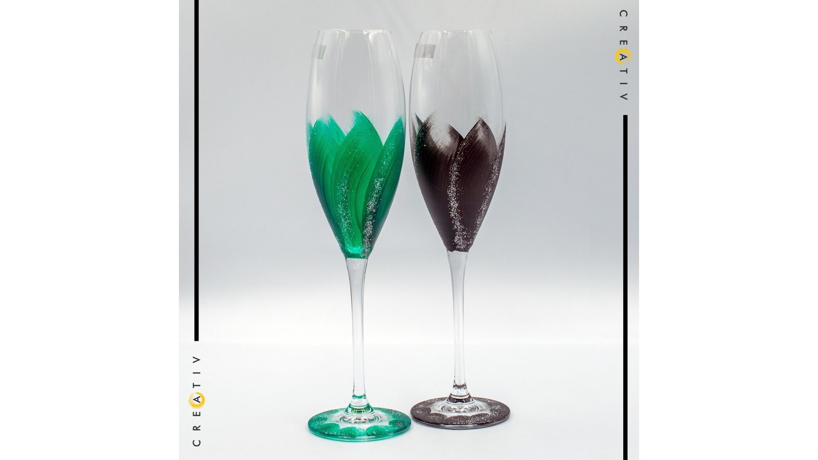 Pahare de sampanie pentru miri sau nasi verde cu negru