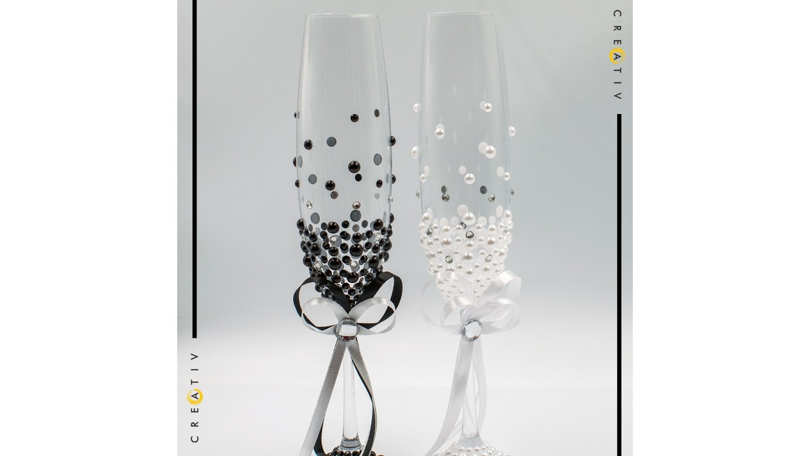 Pahare de sampanie pentru miri sau nasi perle 2 alb si negru