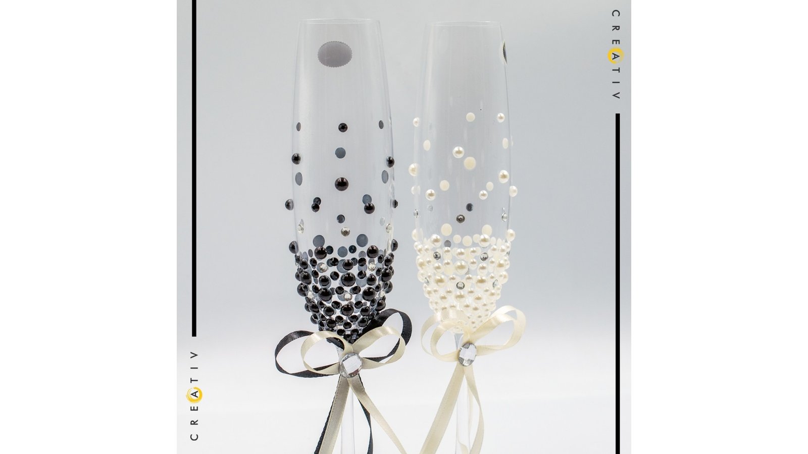 Pahare de sampanie pentru miri sau nasi perle 2 crem si negru