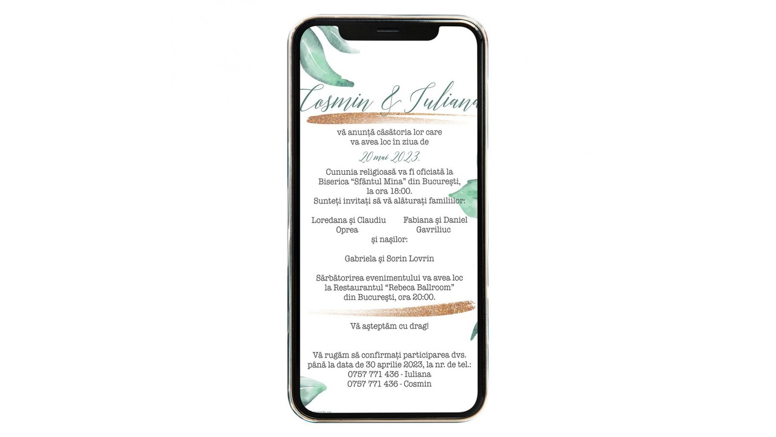 Invitatie digitala de nunta Deep Green Leafs