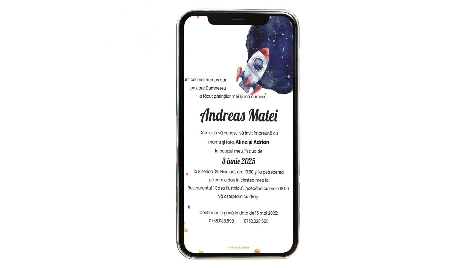 Invitatie digitala de botez cosmica