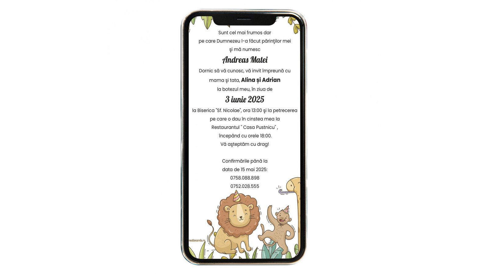 Invitatie digitala de botez safari