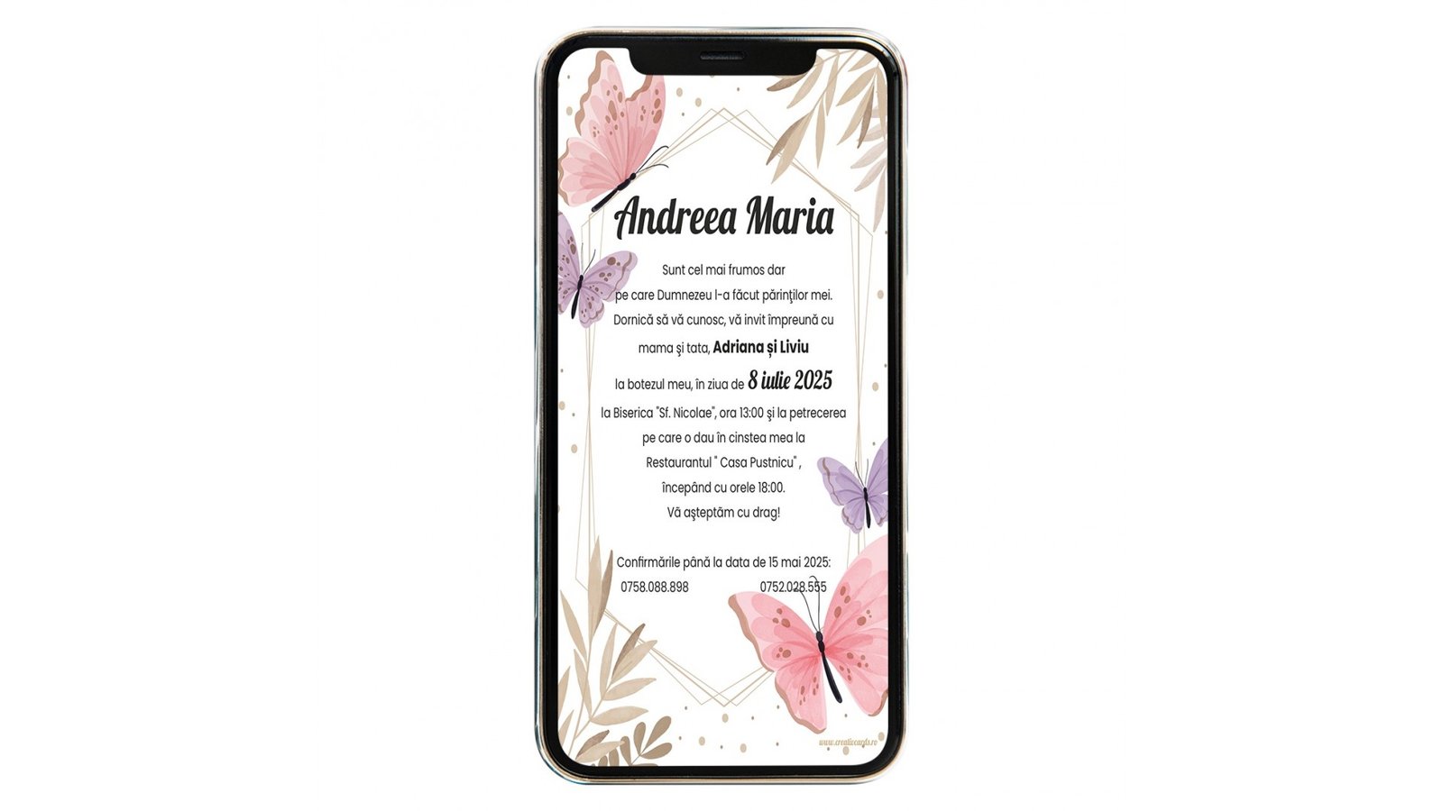 Invitatie digitala de botez butterfly