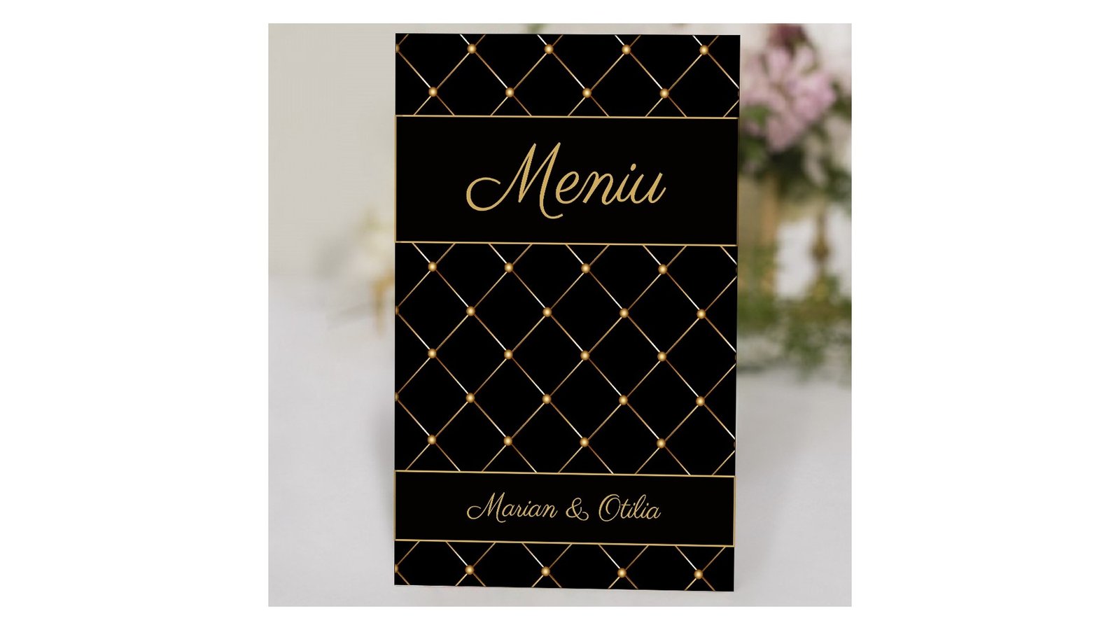 Succesul realizarii unui eveniment fara cusur consta in atentia la detalii, cum ar fi meniurile. De aceea va propunem, [page_title] produsul ideal pentru un aranjament perfect al mesei. Modelele concepute de noi sunt de cea mai inalta calitate, personalizate si lucrate manual. Cum comand? Pentru a putea comanda trebuie sa urmati cativa pasi simpli: Alege varianta in care doresti sa achizitionezi meniurile: “Tiparite” sau “Tiparite si Asamblate”. Completeaza formularul cu detaliile evenimentului, disponibil in pagina de produs. Selecteaza cantitatea Plaseaza comanda Ce inseamna asamblare? Asamblarea consta in lipire, decupare, indoire, lipire accesorii, lipire funda, legare panglica etc. in functie de model. In cat timp este gata comanda? Timpul mediu de realizare este cuprins intre 5-7 zile lucratoare. Ce se intampla dupa ce ati plasat comanda? Un coleg va reveni la dvs. cu un apel telefonic pentru confirmarea comenzii. Dupa confirmarea telefonica, veti primi pe whatssapp/mail macheta meniului pentru verificarea acesteia. Doar dupa confirmarea dumneavoastra meniurile se vor tipari. Pentru text puteti alege orice culoare doriti, cu exceptia culorilor auriu si argintiu.