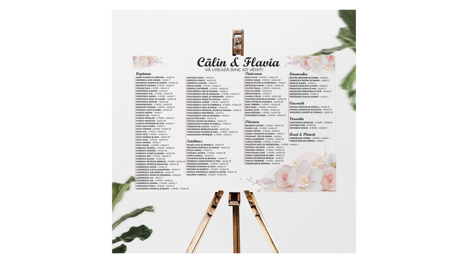 Succesul realizarii unui eveniment fara cusur consta in atentia la detalii, cum ar fi opisul sau asezarea la mese. De aceea va propunem, [page_title] produsul ideal pentru o mai buna organizare a evenimentului. Modelele concepute de noi sunt de cea mai inalta calitate, personalizate si lucrate cu mare atentie. Cum comand? Pentru a putea comanda trebuie sa urmati cativa pasi simpli: Alege dimensiunea si materialul Incarca fisierul cu asezarea la mese Plaseaza comanda Cum stiu ce material sa aleg? Opisul din carton/hartie de 200gr este potrivit pentru evenimentul unde la intrare este prezent un stativ de tip rama, deoarece acesta fiind foarte usor ca si greutate, nu poate sta fix si este si foarte fragil. Opisul din PVC este potrivit pentru stativul de tip sevalet, acesta fiind putin mai greu ca si greutate nu este la fel de fragil. In cat timp este gata comanda? Timpul mediu de realizare este cuprins intre 5-7 zile lucratoare. Ce se intampla dupa ce ati plasat comanda? Un coleg va reveni la dvs. cu un apel telefonic pentru confirmarea comenzii. Dupa confirmarea telefonica, veti primi pe whatssapp/mail macheta pentru verificarea acesteia. Doar dupa confirmarea dumneavoastra opisul se va tipari. Pentru text puteti alege orice culoare doriti, cu exceptia culorilor auriu si argintiu.