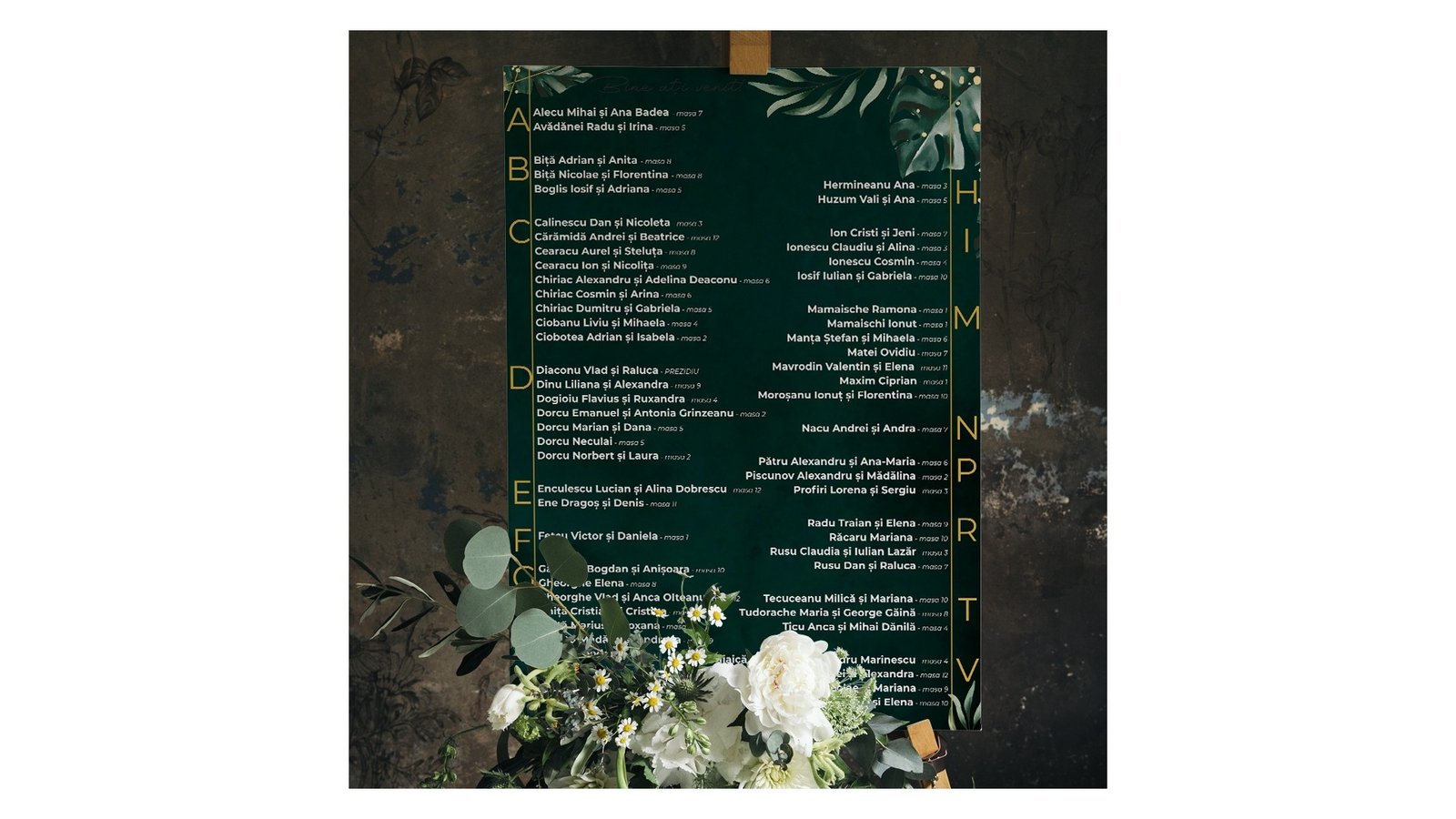 Succesul realizarii unui eveniment fara cusur consta in atentia la detalii, cum ar fi opisul sau asezarea la mese. De aceea va propunem, [page_title] produsul ideal pentru o mai buna organizare a evenimentului. Modelele concepute de noi sunt de cea mai inalta calitate, personalizate si lucrate cu mare atentie. Cum comand? Pentru a putea comanda trebuie sa urmati cativa pasi simpli: Alege dimensiunea si materialul Incarca fisierul cu asezarea la mese Plaseaza comanda Cum stiu ce material sa aleg? Opisul din carton/hartie de 200gr este potrivit pentru evenimentul unde la intrare este prezent un stativ de tip rama, deoarece acesta fiind foarte usor ca si greutate, nu poate sta fix si este si foarte fragil. Opisul din PVC este potrivit pentru stativul de tip sevalet, acesta fiind putin mai greu ca si greutate nu este la fel de fragil. In cat timp este gata comanda? Timpul mediu de realizare este cuprins intre 5-7 zile lucratoare. Ce se intampla dupa ce ati plasat comanda? Un coleg va reveni la dvs. cu un apel telefonic pentru confirmarea comenzii. Dupa confirmarea telefonica, veti primi pe whatssapp/mail macheta pentru verificarea acesteia. Doar dupa confirmarea dumneavoastra opisul se va tipari. Pentru text puteti alege orice culoare doriti, cu exceptia culorilor auriu si argintiu.