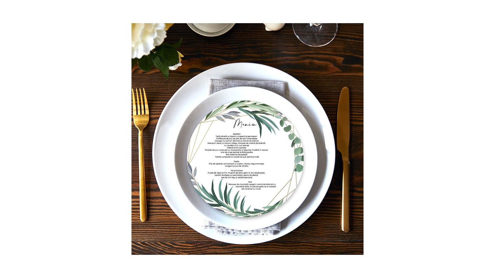 Succesul realizarii unui eveniment fara cusur consta in atentia la detalii, cum ar fi meniurile. De aceea va propunem, [page_title] produsul ideal pentru un aranjament perfect al mesei. Modelele concepute de noi sunt de cea mai inalta calitate, personalizate si lucrate manual. Cum comand? Pentru a putea comanda trebuie sa urmati cativa pasi simpli: Alege varianta in care doresti sa achizitionezi meniurile: “Tiparite” sau “Tiparite si Asamblate”. Completeaza formularul cu detaliile evenimentului, disponibil in pagina de produs. Selecteaza cantitatea Plaseaza comanda Ce inseamna asamblare? Asamblarea consta in lipire, decupare, indoire, lipire accesorii, lipire funda, legare panglica etc. in functie de model. In cat timp este gata comanda? Timpul mediu de realizare este cuprins intre 5-7 zile lucratoare. Ce se intampla dupa ce ati plasat comanda? Un coleg va reveni la dvs. cu un apel telefonic pentru confirmarea comenzii. Dupa confirmarea telefonica, veti primi pe whatssapp/mail macheta meniului pentru verificarea acesteia. Doar dupa confirmarea dumneavoastra meniurile se vor tipari. Pentru text puteti alege orice culoare doriti, cu exceptia culorilor auriu si argintiu.