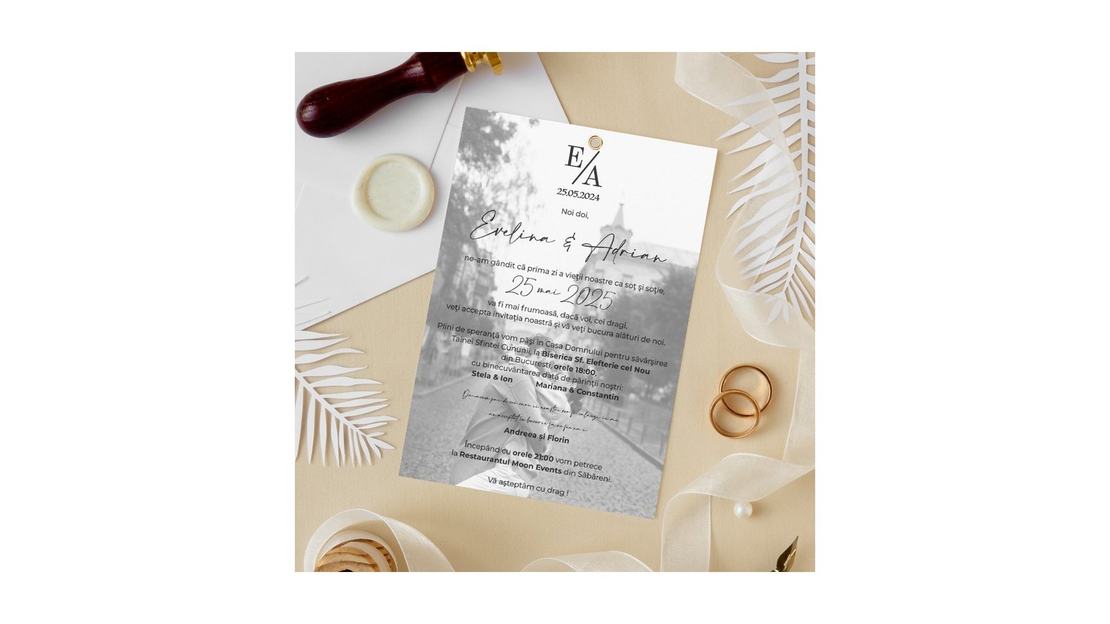Invitatie de nunta cu fotografie si hârtie de calc