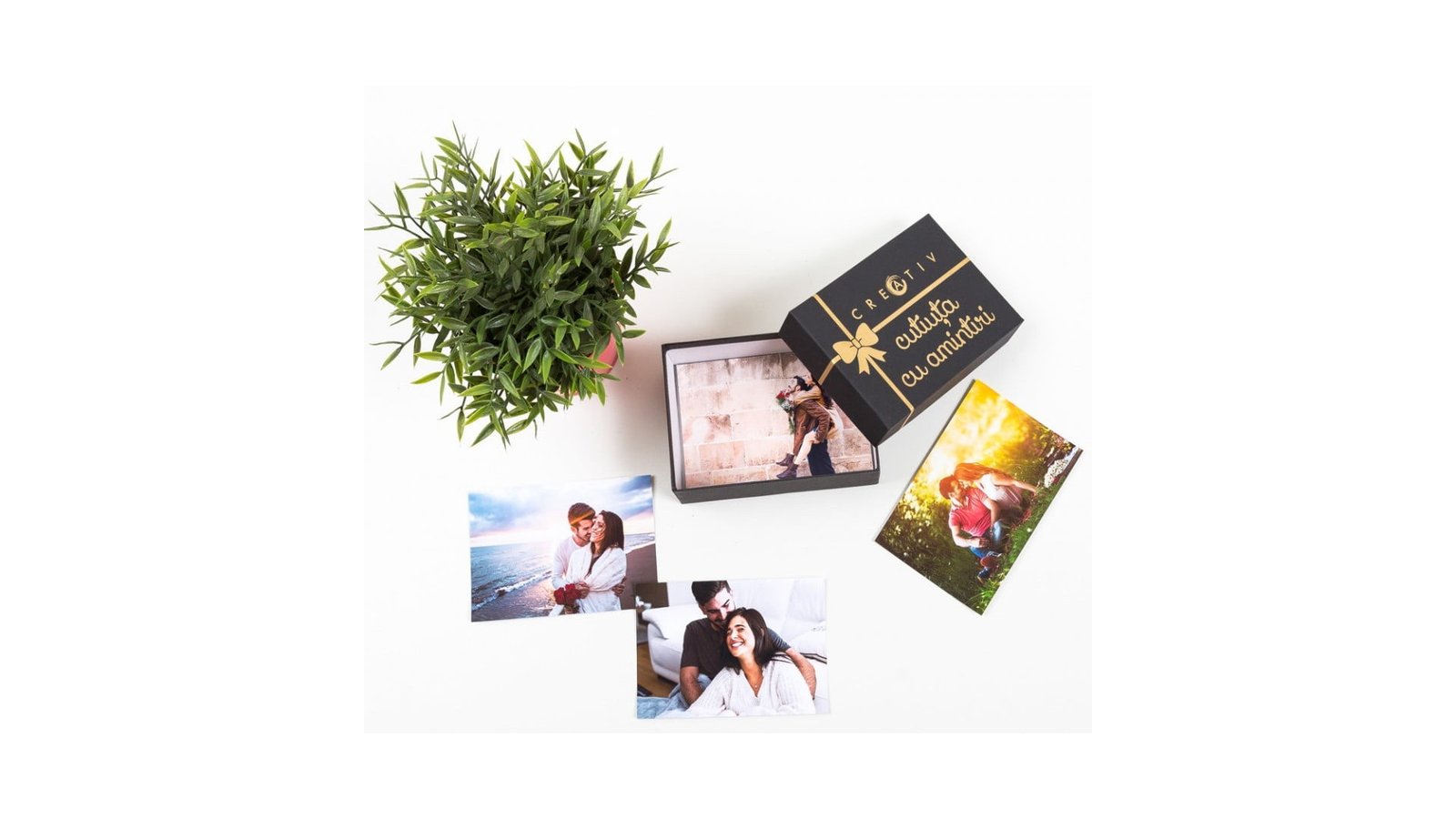 Cutiuta cu Amintiri - 30 Fotografii 10x15: Păstrează Cele Mai Prețioase Momente! Cauți un mod unic și elegant de a păstra amintirile tale speciale? Cutiuta cu amintiri - 30 fotografii 10x15 este alegerea perfectă! Această cutiuță imprimată deosebită conține 30 de fotografii în format 10x15 cm, oferindu-ți o modalitate creativă și tangibilă de a savura cele mai frumoase momente. De Ce Să Alegi Cutiuta cu Amintiri - 30 Fotografii? Un Cadou Personalizat și Memorabil: Cu 30 de fotografii incluse, această cutiuță este ideală pentru a crea un album foto personalizat, ambalat într-o cutie elegantă. Perfectă ca un cadou emoționant sau pentru a-ți păstra propriile amintiri. Design Imprimat Elegant: Cutiuta este imprimată cu un design de calitate, oferind protecție și stil pentru fotografiile tale. Amintiri Tangibile: Într-o lume digitală, Cutiuta cu amintiri îți permite să păstrezi amintirile într-un mod tradițional și intim, departe de ecrane, dar la îndemână oricând dorești să revizitezi momente speciale. Caracteristici Cheie: 30 de Fotografii 10x15 cm: Oferă suficient spațiu pentru a include toate momentele speciale din viața ta – de la evenimente importante până la momente cotidiene. Cutie Imprimată: Această cutie de calitate asigură protecția fotografiilor tale și este perfectă pentru a fi oferită cadou. Metoda de Transmitere a Fotografiilor: Pentru a procesa comanda, te rugăm să ne trimiți cele 30 de fotografii la adresa office@creativ.ro , menționând în subiect numărul comenzii . Acest lucru ne va ajuta să identificăm rapid comanda ta și să începem procesul de printare. Notă Importantă - Opțiunea "Fit to Paper": Pentru a te asigura că fotografiile tale sunt imprimate corect și fără margini tăiate sau distorsionate, îți recomandăm să activezi opțiunea "Fit to Paper" atunci când pregătești fotografiile pentru printare. Această opțiune va ajusta automat imaginea pentru a se potrivi perfect pe hârtie, păstrând proporțiile originale. Dacă fotografiile nu au exact proporțiile necesare, trebuie să ai în vedere că anumite părți din fotografie vor fi tăiate. Încadrarea pe fotografie se face automat. Informare importantă: Vă rugăm să rețineți că pot exista diferențe de culoare între imaginea afișată pe ecran și produsul final imprimat. Aceste diferențe se datorează modului diferit în care culorile sunt redate pe ecran (RGB) și modului în care sunt imprimate (CMYK). Pentru cele mai bune rezultate, vă recomandăm să utilizați imagini de înaltă rezoluție. Cum Să Comanzi: Adaugă produsul în coș. Plasează comanda. Trimite cele 30 de fotografii la office@creativ.ro , menționând numărul comenzii în subiect. Bucură-te de amintirile tale tipărite, păstrate cu grijă într-o cutiuță elegantă! Poti opta pentru celelalte produse similare: Cutiuta cu amintiri cu 12 fotografii pliate Cutiuta cu amintiri cu 50 de fotografii Și alte modele de cutiuțe cu amintiri. Comandă acum și transformă-ți cele mai frumoase amintiri în fotografii tipărite, perfecte pentru orice ocazie! Citește mai mult