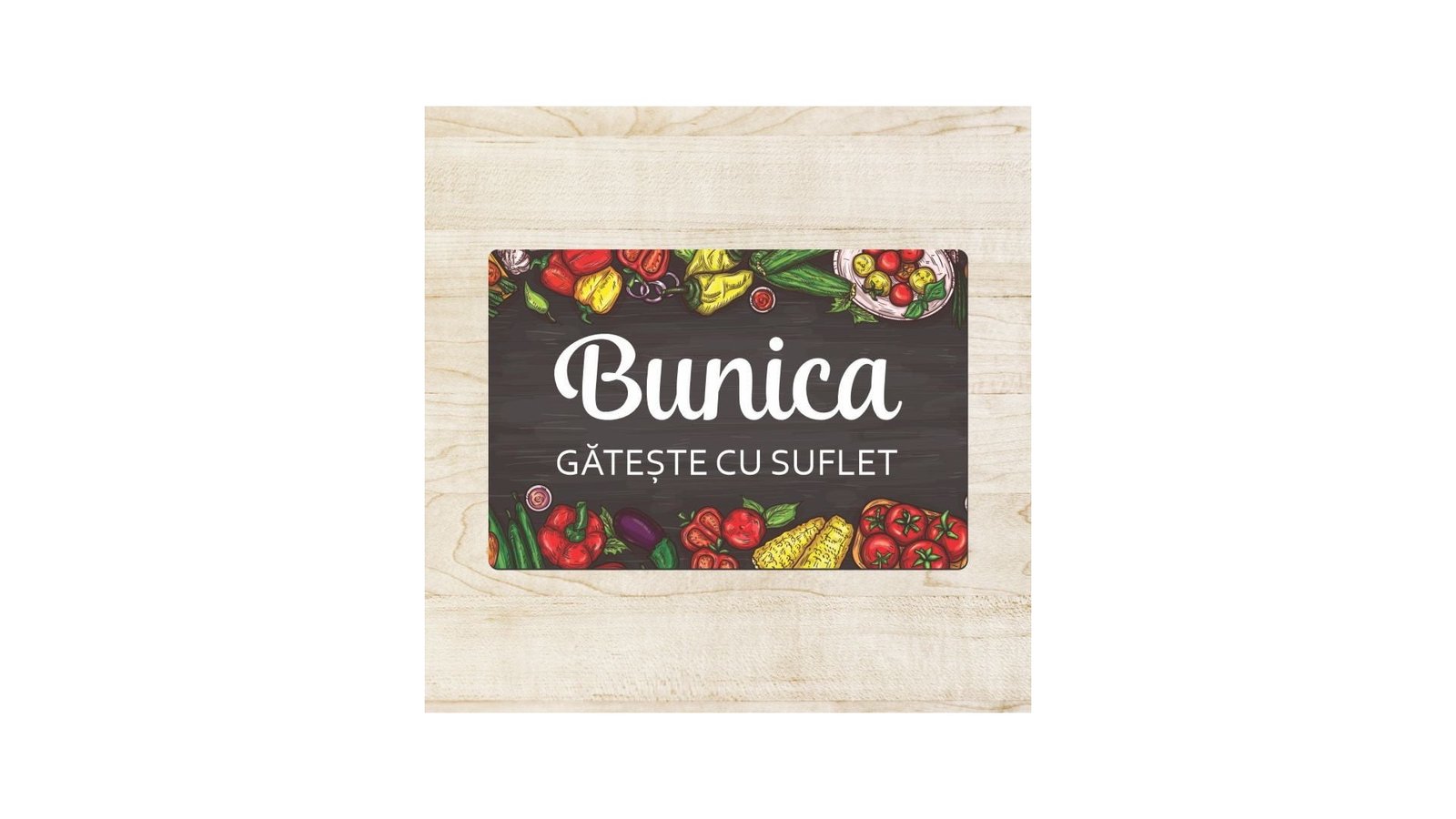 Vă place să gătiți? Sunteți pasionat de bucătărie? Sau poate aveți persoane dragi pentru care gătitul este cea mai plăcută activitate? Atunci un tocator personalizat cu nume - legume este cea mai bună idee de cadou! Cu mesaje amuzante sau personalizate cu numele ales de dumneavoastră, tocatoarele personalizate sunt realizate dintr-un material de calitate pentru o rezistenta indelungata. Un tocator personalizat cu nume - legume completeaza perfect trusa de ustensile a unui bucatar. Tocator personalizat chef poate fi folosita ca material promotional, dar si drept cadou. Mai multe produse dedicate bucatarilor puteti gasi in categoria pentru bucatari . Caracteristici tocator personalizat: Tocatorul personalizat poate fi folosit si ca rama foto sticla. Placa de sticla tratata special pentru personalizare de calitate. Este ambalat in folie cu bule si cutie de carton alba lucioasa. Nu contine suport pentru birou. Dimensiune - 18 x 27 cm Pentru a putea comanda un tocator personalizat cu nume - legume trebuie să urmați câțiva pași: Pasul 1: Apasa butonul de personalizare pentru ati completa datele sau pentru a crea modelul tau Pasul 2: Adauga in cos Pasul 3: Plaseaza comanda Pasul 4: Bucură-te de un tocator personalizat exact pe gustul tau.