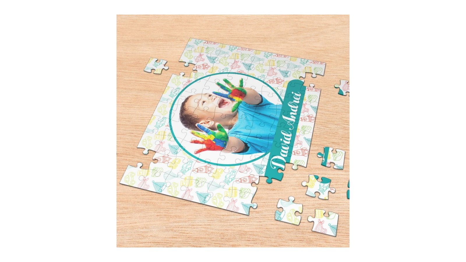 Cadoul perfect pentru adulti, dar si pentru copii! Un puzzle personalizat cu o fotografie si nume baietel - A4 este o modalitate excelentă pentru a vă putea asigura că amintirile dumneavoastră vor rezista pentru totdeauna. Este o idee de cadou personală și din suflet pentru o persoană dragă, și în același timp, o metodă interactivă pentru membrii familiei. Am realizat diferite modele de puzzle personalizate , insa daca nu gasesti ceva potrivit poti sa ne trimiti si realizam modelul tau! Specificații: Tot ce trebuie să faceți este să încărcați fotografia dumneavoastră în format JPEG sau PNG. Vă informăm că lățimea maximă, precum și înălțimea maximă a fotografiei este de 2000 px. Alegeți o fotografie cât mai clară și mai calitativă pentru a beneficia de cea mai bună imprimare posibilă. Dimensiunile puzzle - A4 si A3 Număr de piese - 135 la cel A4 si 96 de piese cel A3. Culorile pot suferi mici modificari in timpul procesului de personalizare. Pentru a putea comanda un puzzle personalizat cu o fotografie si nume baietel - A4 trebuie să urmați câțiva pași: Pasul 1: Apasa butonul de personalizare pentru ati completa datele sau pentru a crea modelul tau Pasul 2: Adauga in cos Pasul 3: Plaseaza comanda Pasul 4: Bucură-te de un puzzle personalizat exact pe gustul tau.