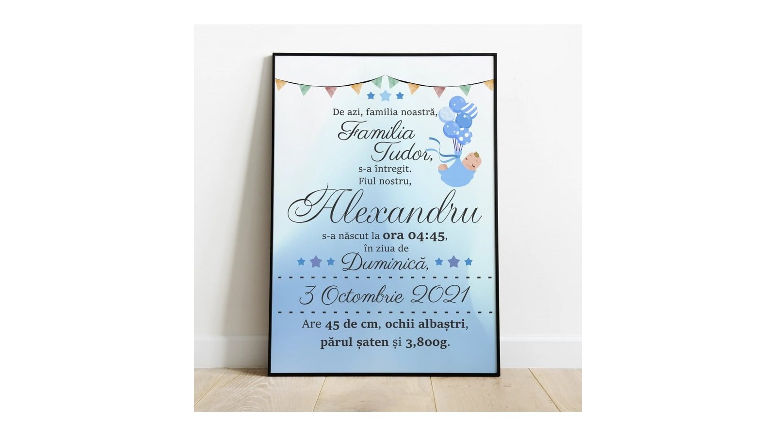 Cele mai frumoase amintiri rămân cele înrămate, nu-i așa? Vreți să surprindeți o persoană specială cu un cadou deosebit, personal și pe care să îl poată păstra ani de zile? Deși trăim în era tehnologiei, tablourile personalizate au rămas unele dintre cele mai apreciate cadouri de către cei dragi. Indiferent de ocazie – zi de naștere, Crăciun, aniversarea relației și altele, un tablou personalizat pentru copii va trece testul timpului si va fi la fel de apreciat. Avand o categorie special dedicata tablourilor personalizate , inevitabil vei gasi ceva pe placul tau. Specificații: Alegeți o fotografie calitativă, în format JPEG sau PNG și încărcați-o pe site. Calitatea tabloului este influențată de calitatea fotografiei încărcate. Rama este confecționată din plastic cu sticla, iar fotografia este printata inkjet. Pentru a putea comanda tablou personalizat pentru copii trebuie să urmați câțiva pași simpli: Pasul 1: Alege dimensiunea tabloului. Pasul 2: Personalizeaza tabloul. Pasul 3: Adauga in cos si plaseaza comanda. Pasul 4: Bucură-te alături de cei dragi de tabloul comandat.