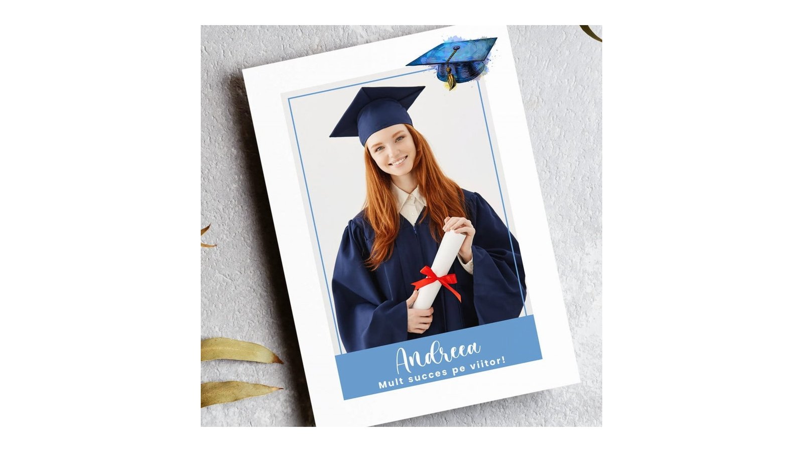 Doriți să transmiteți un mesaj sau o urare unei persoane dragi? O felicitare personalizata pentru absolvire este alegerea potrivită in completarea cadoului. Disponibile cu mesaje amuzante sau personalizate cu numele ales de dumneavoastră, felicitarile CREATIV sunt confecționate dintr-un material de calitate și vin însoțite de plic. Verifica gama noastra completa de felicitari personalizate pentru a alege ceva potrivit evenimentui. Specificatii: Material: carton 300gr semiglossy Dimensiune: 14 x 20 cm Pentru a putea comanda o felicitare personalizata pentru absolvire trebuie să urmați câțiva pași: Pasul 1: Apasa butonul de personalizare pentru ati completa datele sau pentru a crea modelul tau Pasul 2: Adauga in cos Pasul 3: Plaseaza comanda Pasul 4: Bucură-te de o felicitare personalizata exact pe gustul tau.
