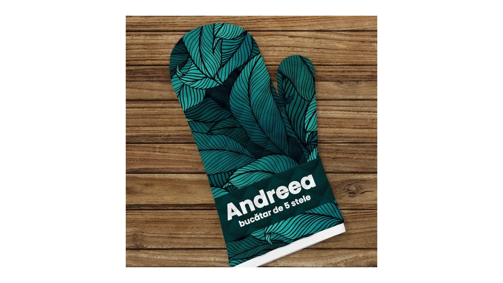 Petreceți mult timp în bucătărie? Sunteți pasionat de arta gastronomiei? Sau poate aveți persoane dragi pentru care gătitul este cea mai plăcută activitate? Atunci o manusa de bucatarie personalizata cu nume este cea mai bună idee de cadou! Indiferent dacă vorbim de un model personalizat sau un mesaj amuzant sugerat de noi, mănușile de bucătărie personalizate sunt o metodă excelentă de a transmite cuiva un mesaj de a petrece mai mult timp la cratiță. Disponibile cu mesaje amuzante sau personalizate cu numele ales de dumneavoastră, mănușile personalizate CREATIV sunt confecționate dintr-un material de calitate și vor fi o plăcere de purtat în timpul gătitului. Alaturi de manusa puteti comanda si o boneta , un tocator sau chiar un sort . Specificatii: Manusa pentru mana dreapta Dimensiune: 17 x 27 cm Material: 100% poilester Pentru a putea comanda o manusa de bucatarie personalizata cu nume trebuie să urmați câțiva pași: Pasul 1: Apasa butonul de personalizare pentru ati completa datele sau pentru a crea modelul tau Pasul 2: Adauga in cos Pasul 3: Plaseaza comanda Pasul 4: Bucură-te de o manusa personalizata exact pe gustul tau.